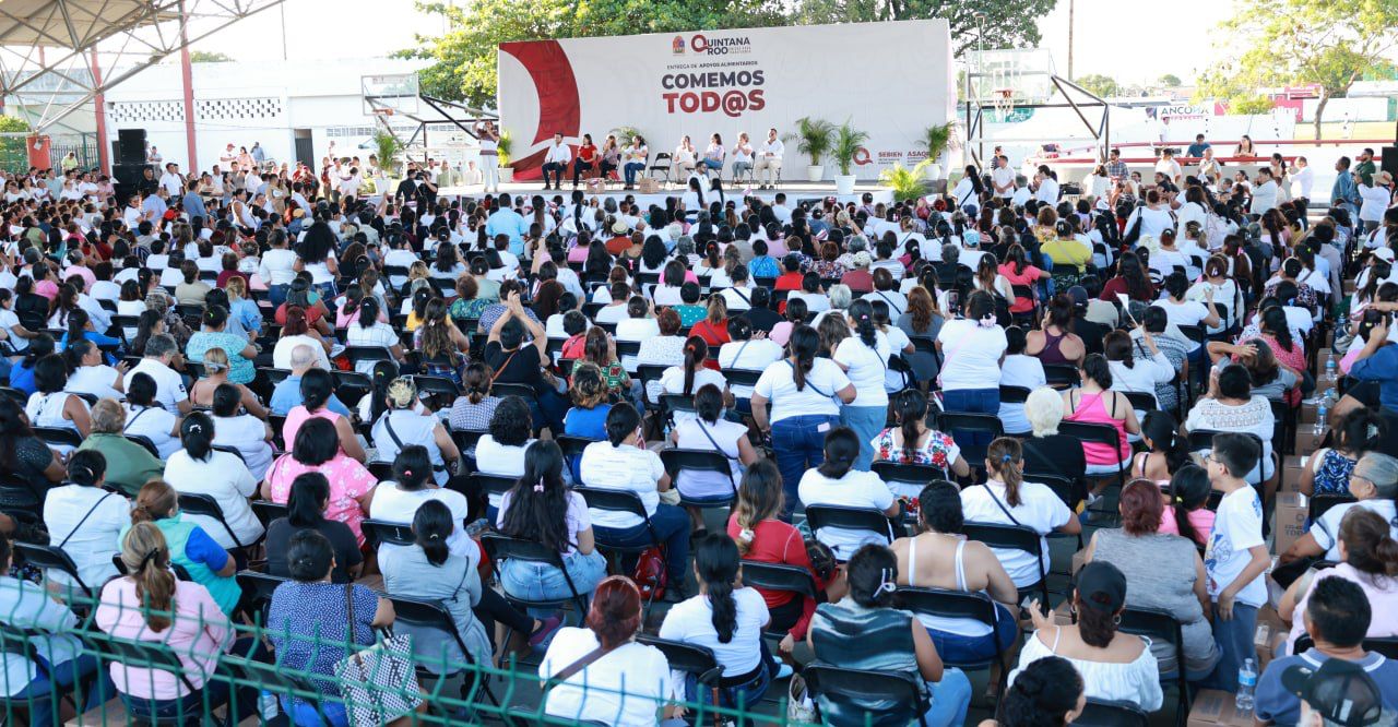 Cancún, Q. R., a 24 de febrero de 2024.- Como parte de las acciones de un gobierno humanista y progresista, autoridades estatales y municipales acudieron a la entrega de 800 paquetes alimentarios y tarjetas monetarias a familias cancunenses del Programa “Comemos Tod@s”.
