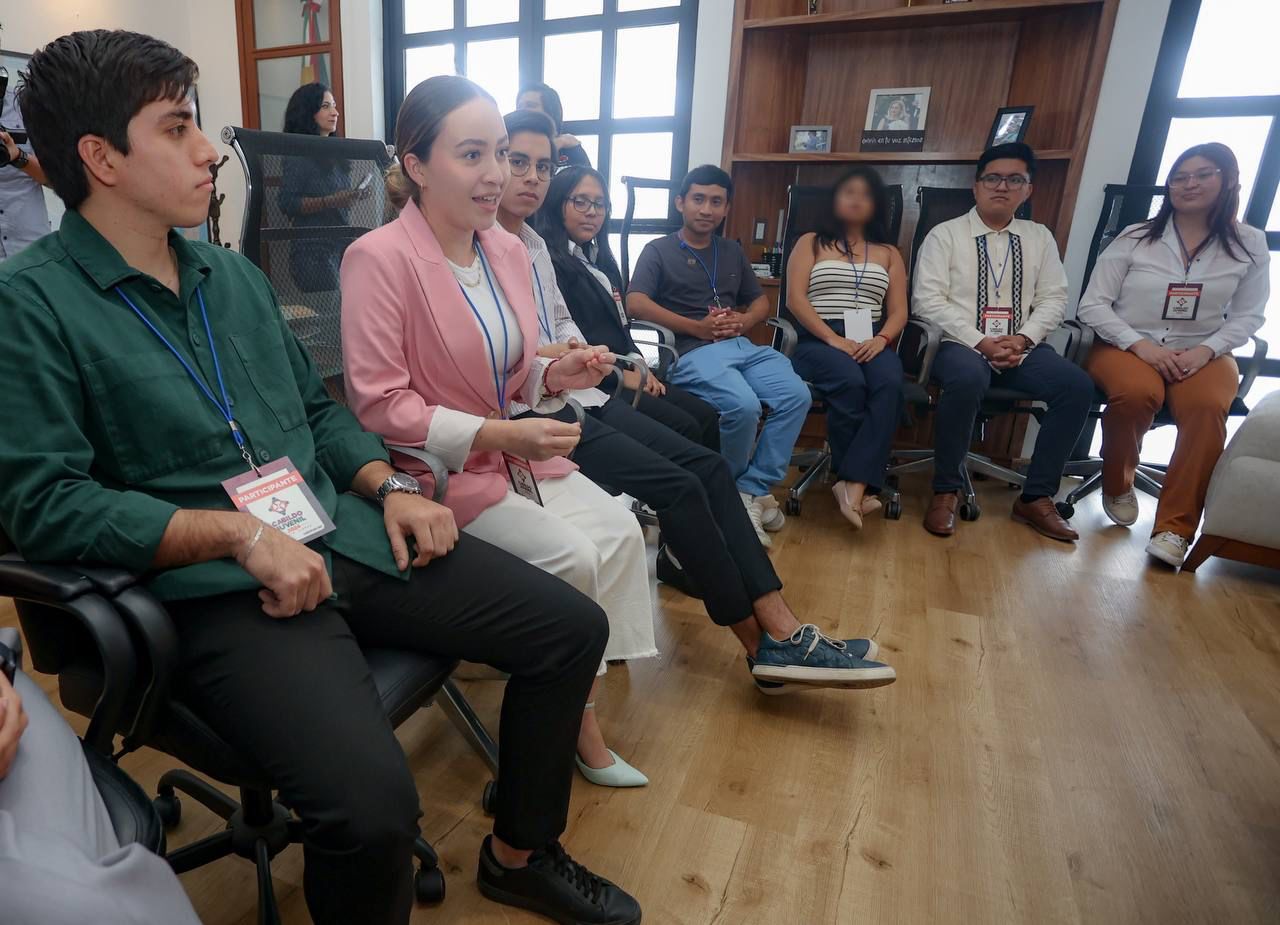 Con el objeto de conocer las principales acciones que realizan a favor de la transformación de Cancún, los participantes fueron recibidos en el Palacio Municipal por la Presidenta Municipal, Ana Paty Peralta, quien emocionada les platicó su experiencia personal y profesional como servidora pública desde temprana edad, además de conocer la trayectoria de cada uno, su escuela de origen y los proyectos que tienen para mejorar la ciudad.