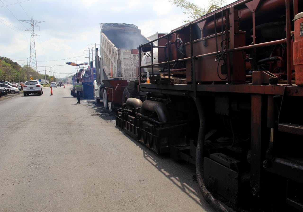 asfáltico en sitio por medio de aire caliente y colocación de la nueva carpeta