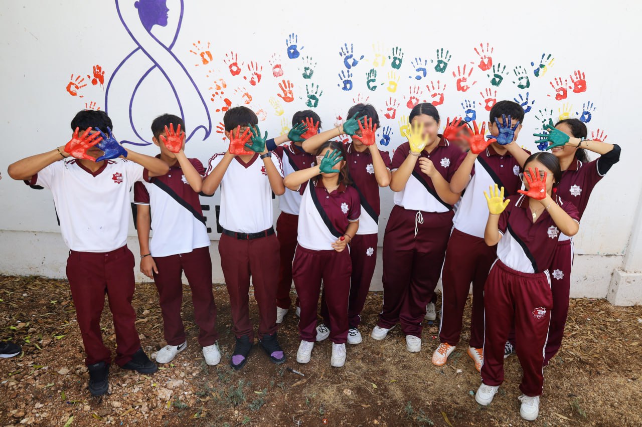 Posteriormente, las y los estudiantes acompañaron a las autoridades a plasmar sus huellas en el mural “Mis compromisos por la paz”, como parte de su compromiso a una salud digna para coartar las brechas de desigualdad.