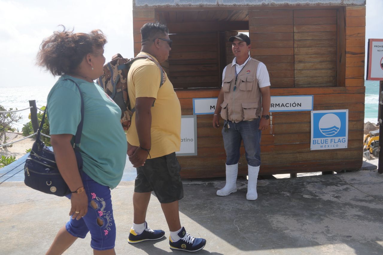 Para ello se cuenta con 37 elementos, quienes al llegar a los arenales llenan una bitácora con el conteo visual de los visitantes y reportan vía radio las condiciones y horario de apertura de la playa de 09:00 a 17:00 horas.