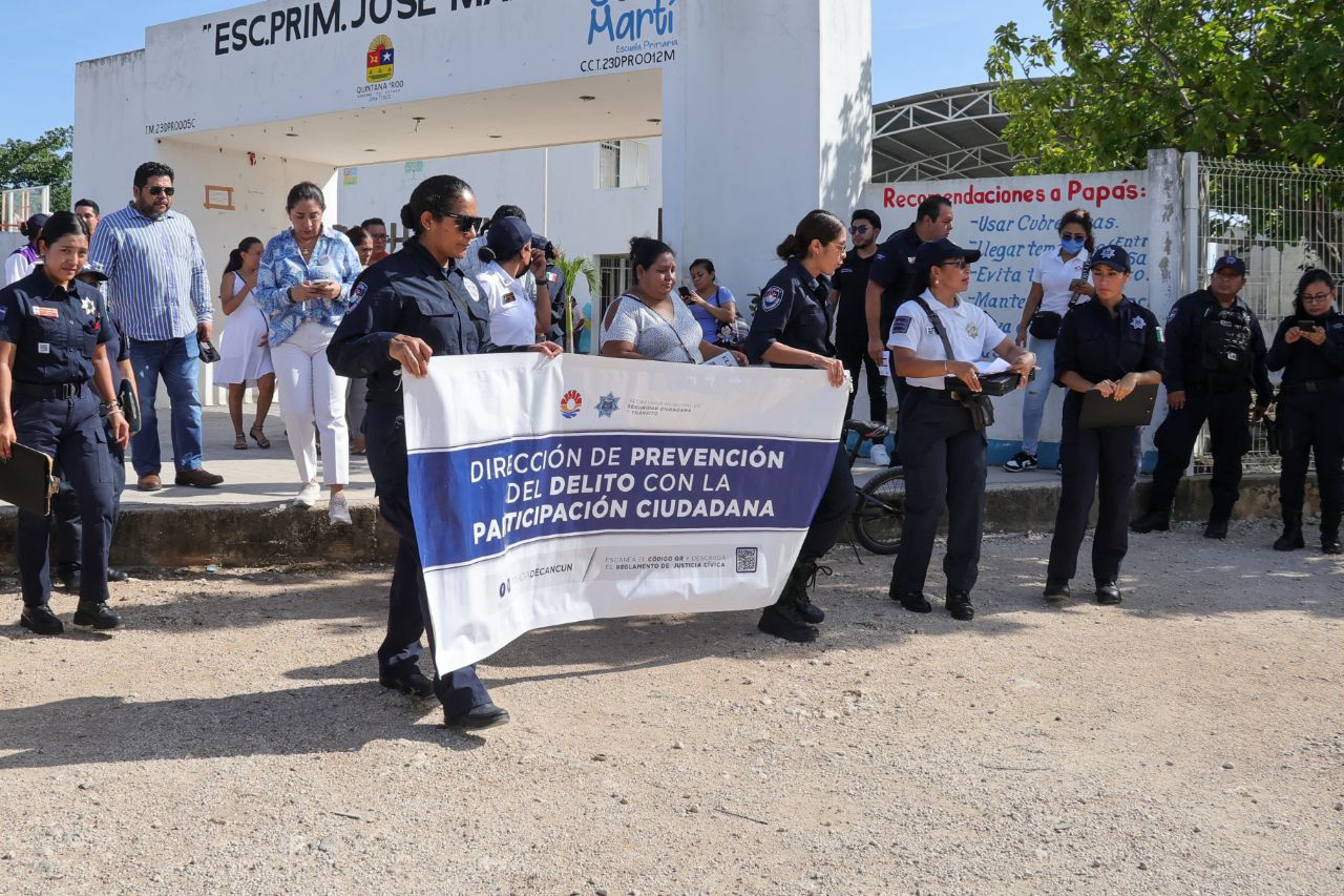 Cancún, Q. R., a 27 de junio de 2024.- Con el objetivo de conocer y detectar factores de riesgo para poder ofrecer la protección necesaria a la salud, seguridad y bienestar de la población, diferentes instituciones municipales llevaron a cabo la actividad “Intervención en Materia Prevención del Delito” en la Supermanzana 259.