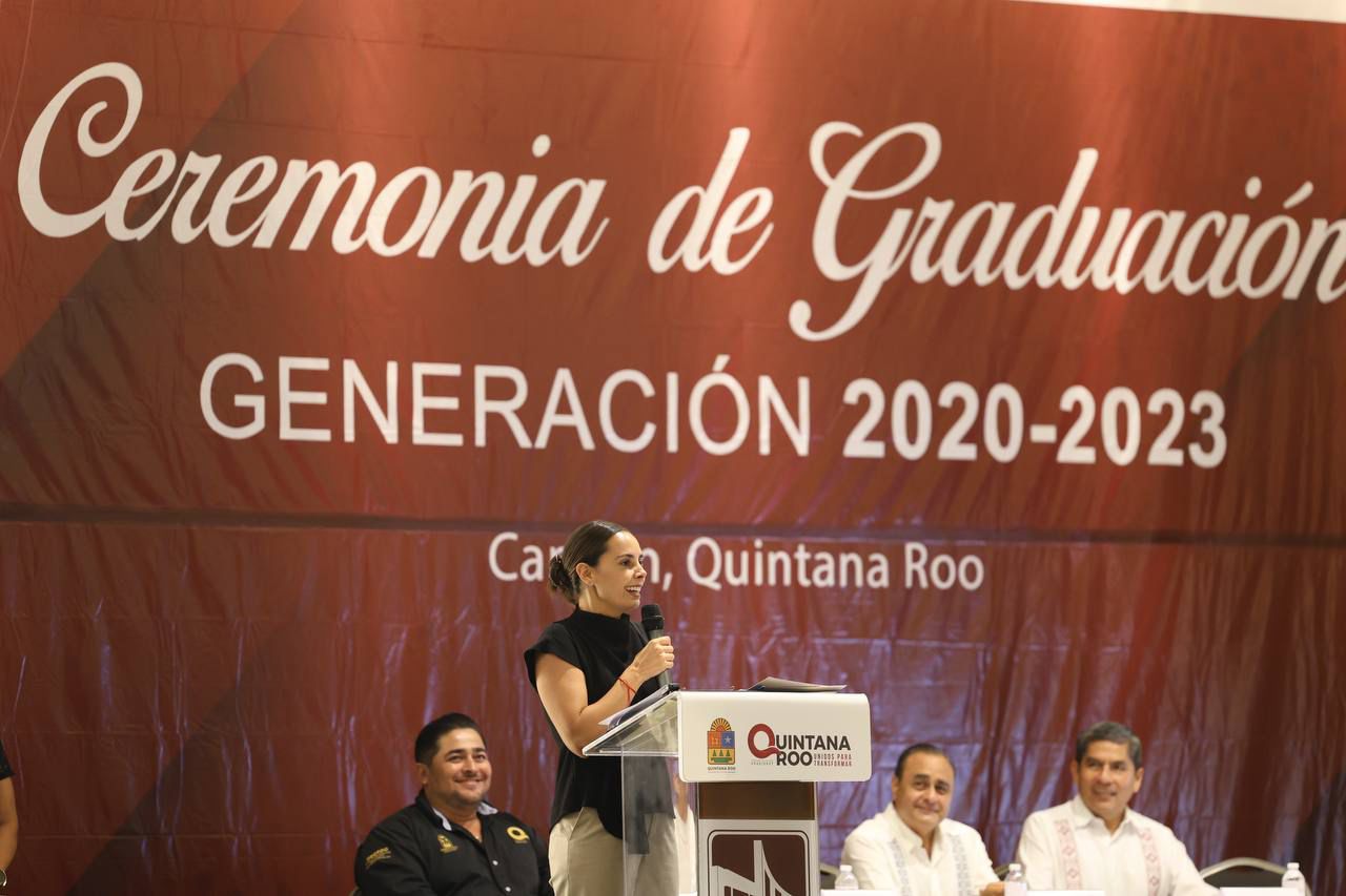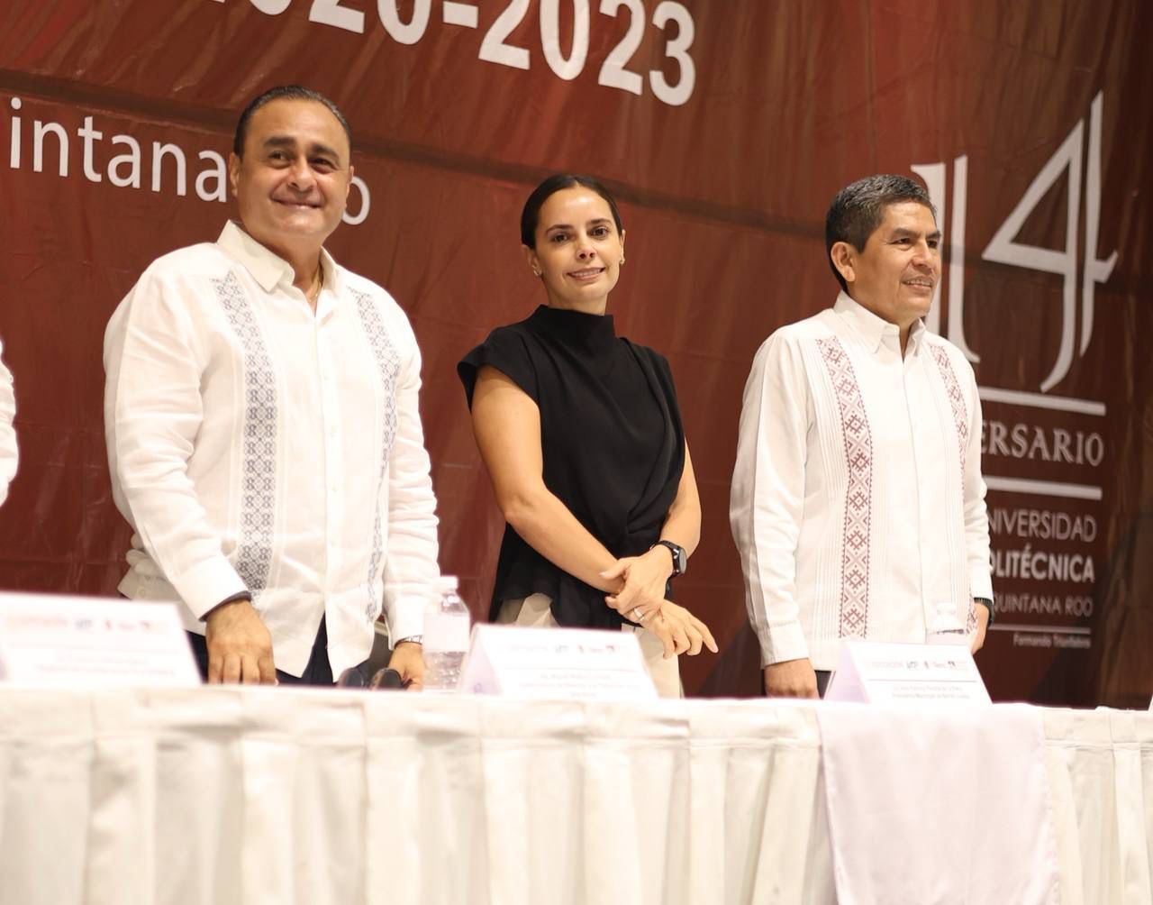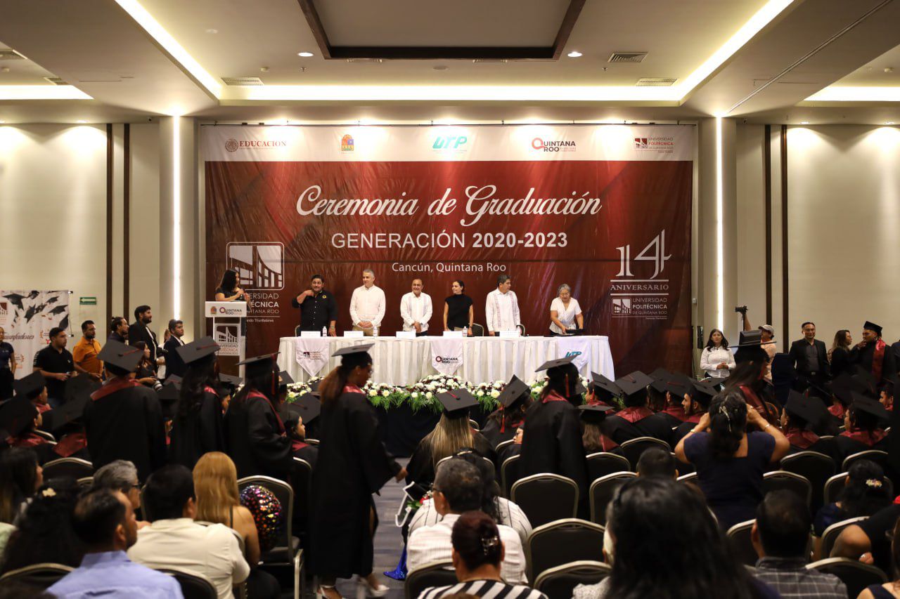 Cancún, Q. R., a 11 de julio de 2024.- En un ambiente de celebración, la Presidenta Municipal, Ana Paty Peralta, participó en la ceremonia de graduación de la generación 2020-2023 de la Universidad Politécnica de Quintana Roo, donde destacó el esfuerzo, la disciplina y la responsabilidad de 161 jóvenes de distintas especialidades que culminaron sus estudios.