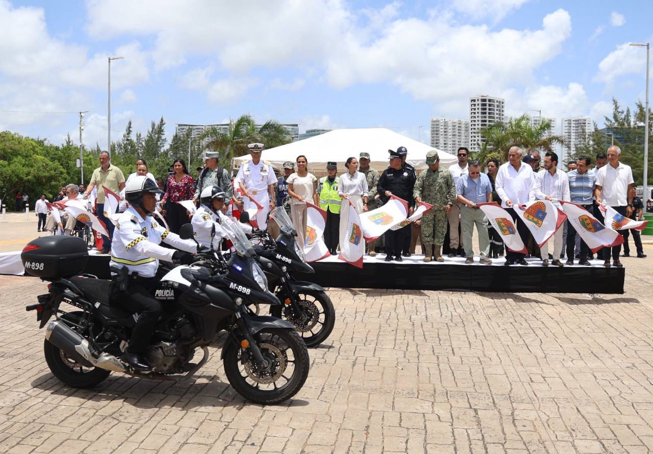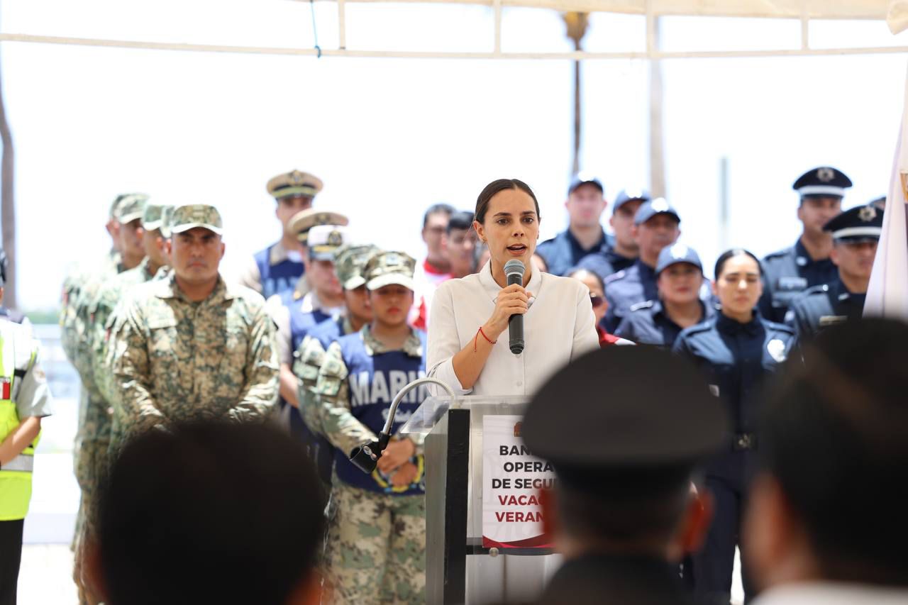 Cancún, Q. R., a 12 de julio de 2024.- “Con este banderazo del Operativo de Seguridad Vacacional de Verano 2024, como gobierno municipal refrendamos nuestro compromiso con el trabajo colaborativo entre los tres niveles de gobierno, siempre de la mano de la estrategia de nuestra gobernadora Mara Lezama, para garantizar la seguridad e integridad de las y los cancunenses y de nuestros visitantes que arriban a este destino”, afirmó la Presidenta Municipal, Ana Paty Peralta.