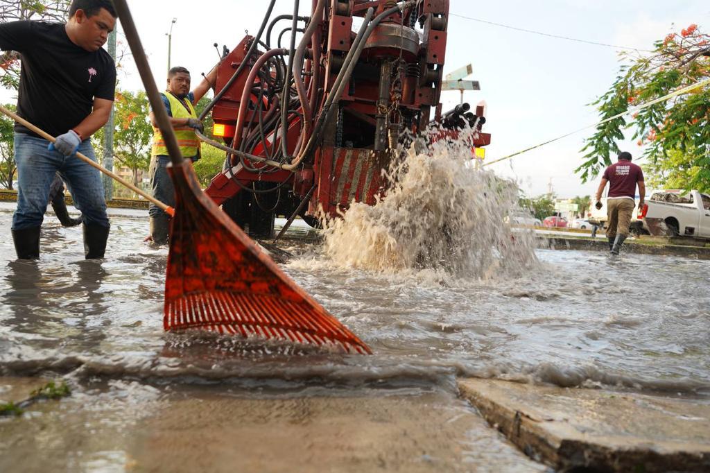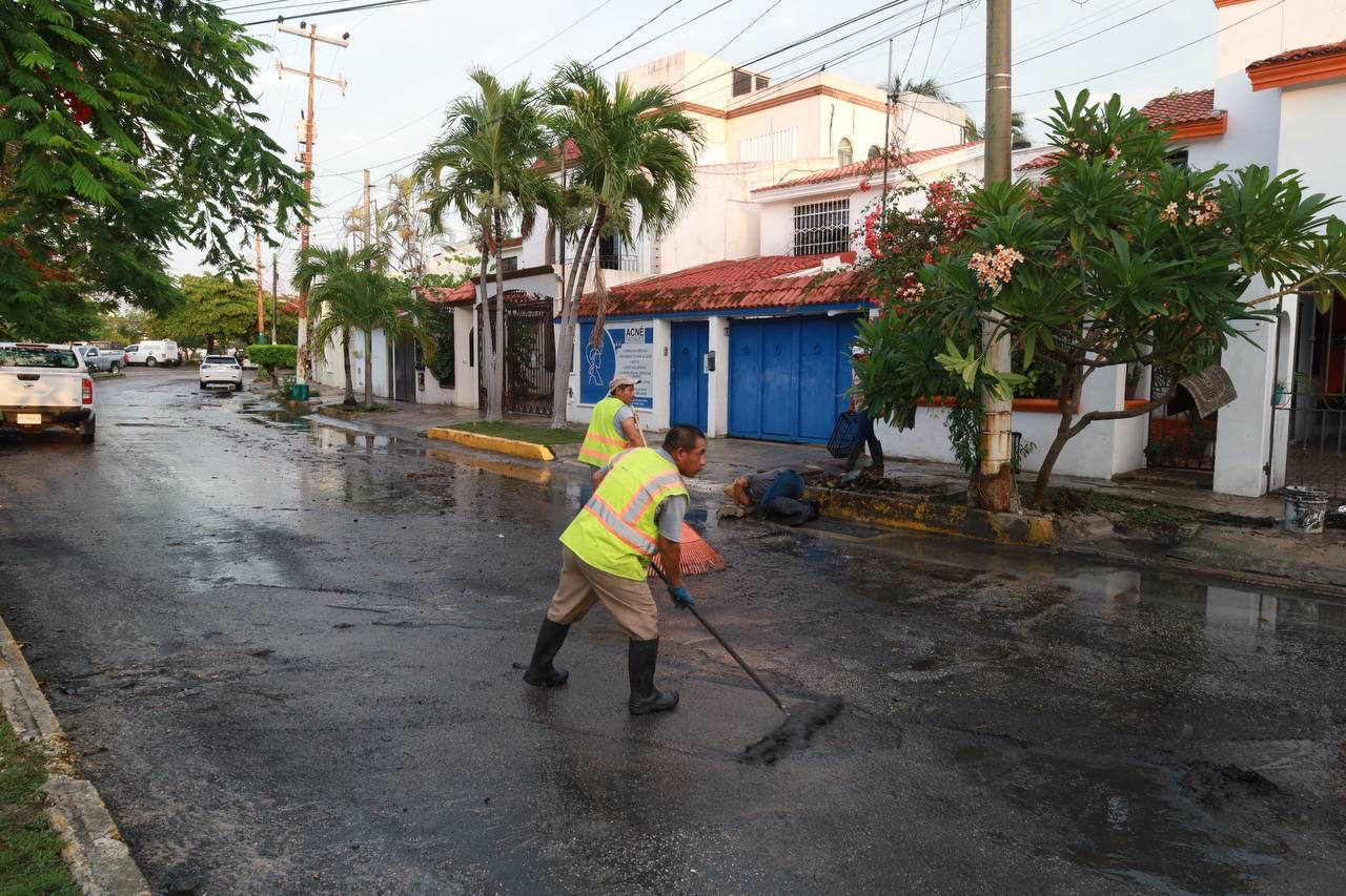 El director general de Servicios Públicos, José Antonio de la Torre Chambe, mencionó que, a través de reportes ciudadanos y recorridos de supervisión, se atendieron con prontitud puntos como, la Avenida Coba con Palenque, Chichen Itzá, Xcaret, Yaxchilán con Kabah, entre otros, utilizando la máquina de desazolve y vactor.