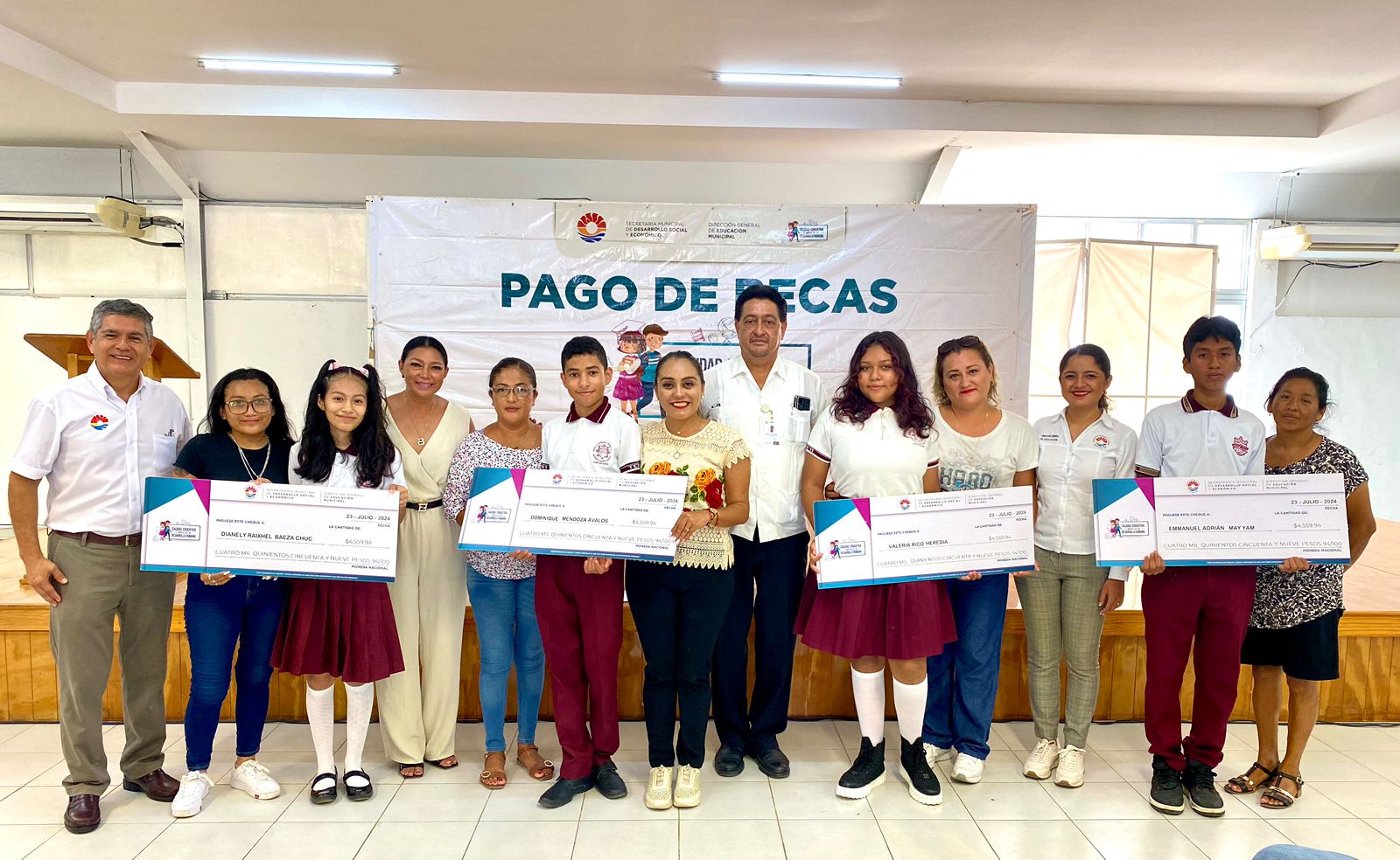 la Presidenta Municipal, Ana Paty Peralta realizaron el pago de 799 becas del
