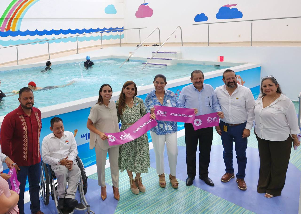 Cancún Q. R., a 24 de julio de 2024.- En un paso más por la construcción de un Cancún más inclusivo e igualitario, la Presidenta Municipal, Ana Paty Peralta, reinauguró junto a la presidenta honoraria del DIF Quintana Roo, Verónica Lezama Espinosa, el tanque terapéutico, con el que ya se podrá dar nuevamente el servicio de hidroterapia en el Centro de Rehabilitación Integral Municipal (CRIM), ubicado en la Supermanzana 67.
