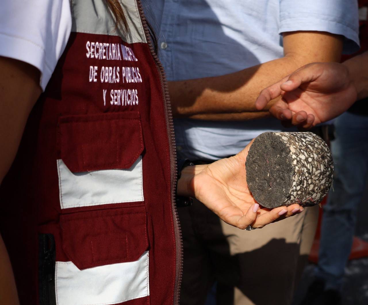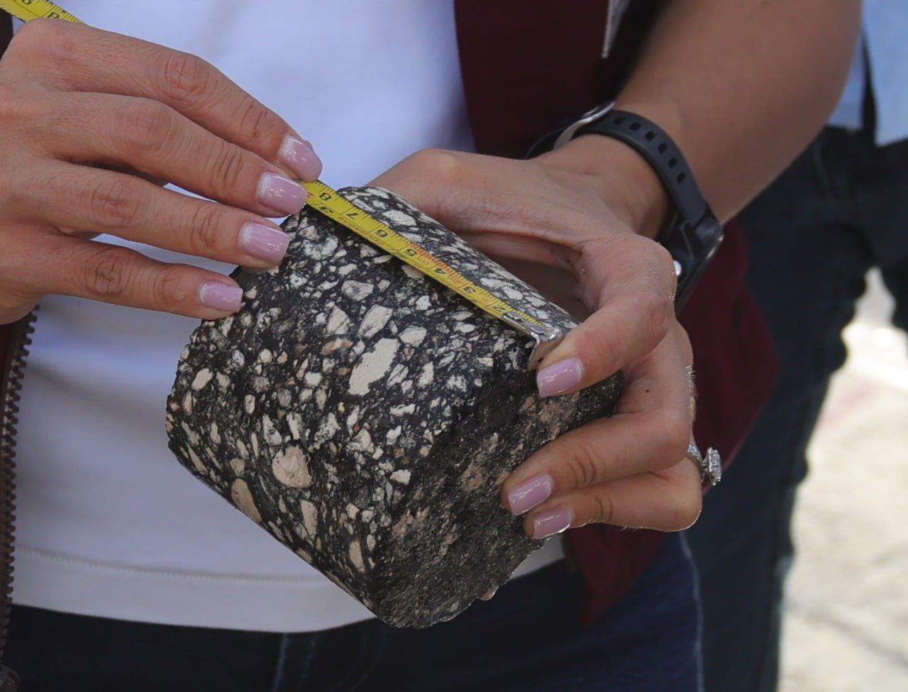Asimismo, la Alcaldesa, acompañada integrantes del Comité de Contraloría Social, personal de las direcciones generales de Servicios Públicos, Tránsito, Obras Públicas y de Construcción, presenció la extracción de muestras de la nueva capa de asfalto que está siendo colocada en la vialidad, la cual tiene un espesor de siete centímetros para garantizar una mayor durabilidad y resistencia a largo plazo.