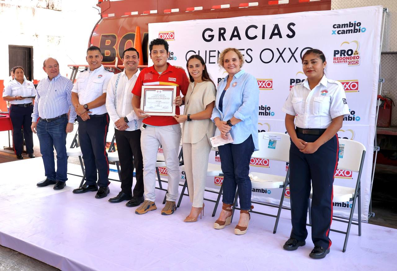 Luego de su mensaje, acompañada del gerente de OXXO Plaza Kukulcán, Adrián Montiel, entregaron reconocimientos a los representantes de las tiendas que más recaudaron del redondeo, que fueron las sucursales: Sands, Chac Mool, Playa Tortugas, Yalmakan y El Faro.