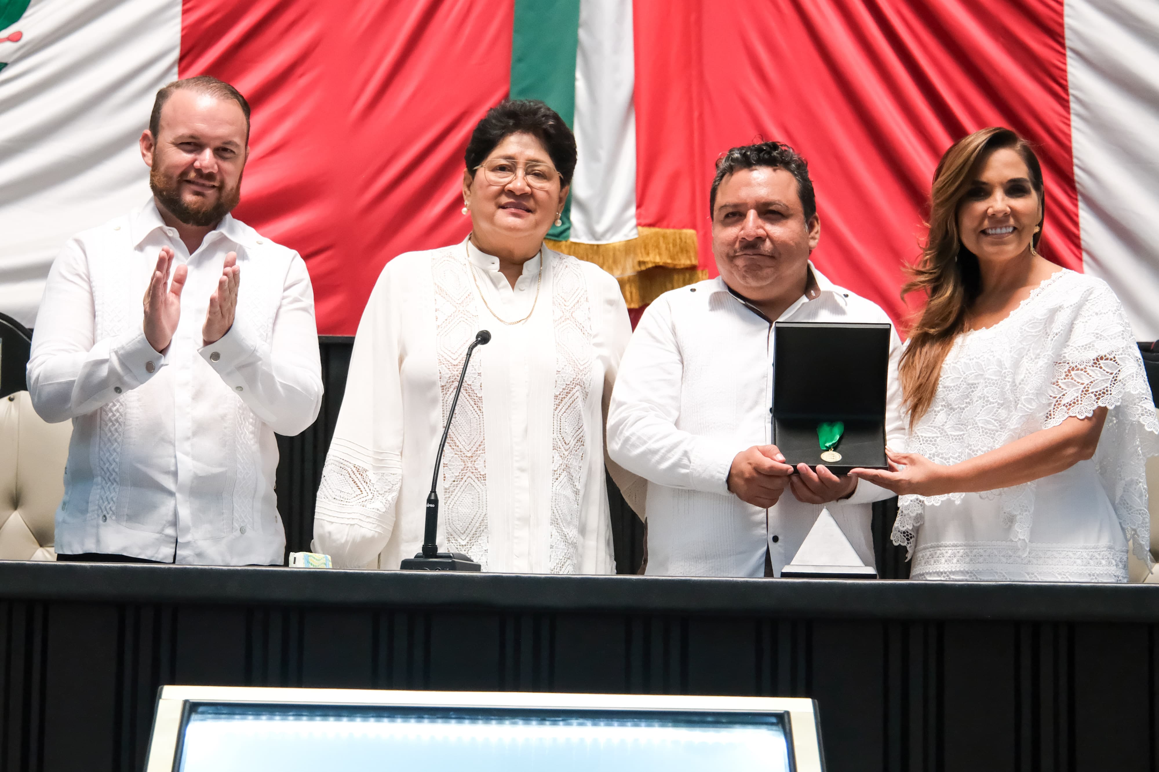 Durante la sesión solemne de la XVII Legislatura del Congreso del Estado, con la representación de los tres poderes, la gobernadora Mara Lezama Espinosa entregó la Medalla al Mérito Indígena Maya “Cecilio Chí” al ciudadano Wildernain Villegas Carrillo, por su destacada labor al intervenir como ponente y panelista de eventos que abordan temas sobre la creación literaria en lenguas originarias, identidad y enseñanza de la lengua maya y traducción literaria, galardonado con el premio internacional “Poesía del Mundo Maya”.