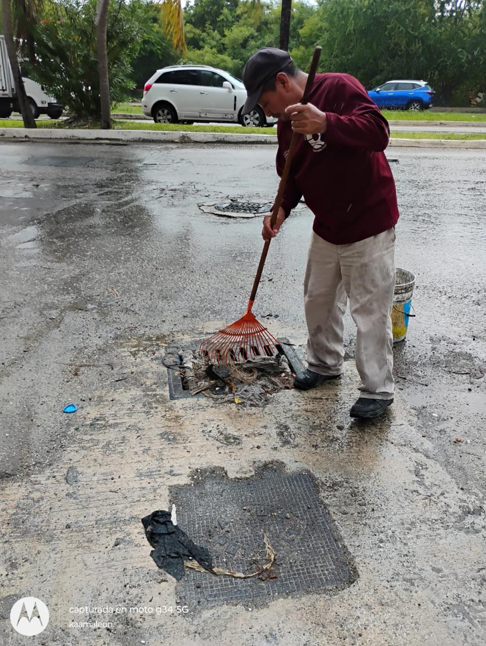 Es importante destacar que en días anteriores a las lluvias, se realizaron acciones preventivas para aminorar los encharcamientos, tales como barrido fino, poda de árboles, levantamiento de desechos, así como desazolves de pozos de absorción con maquinaria.