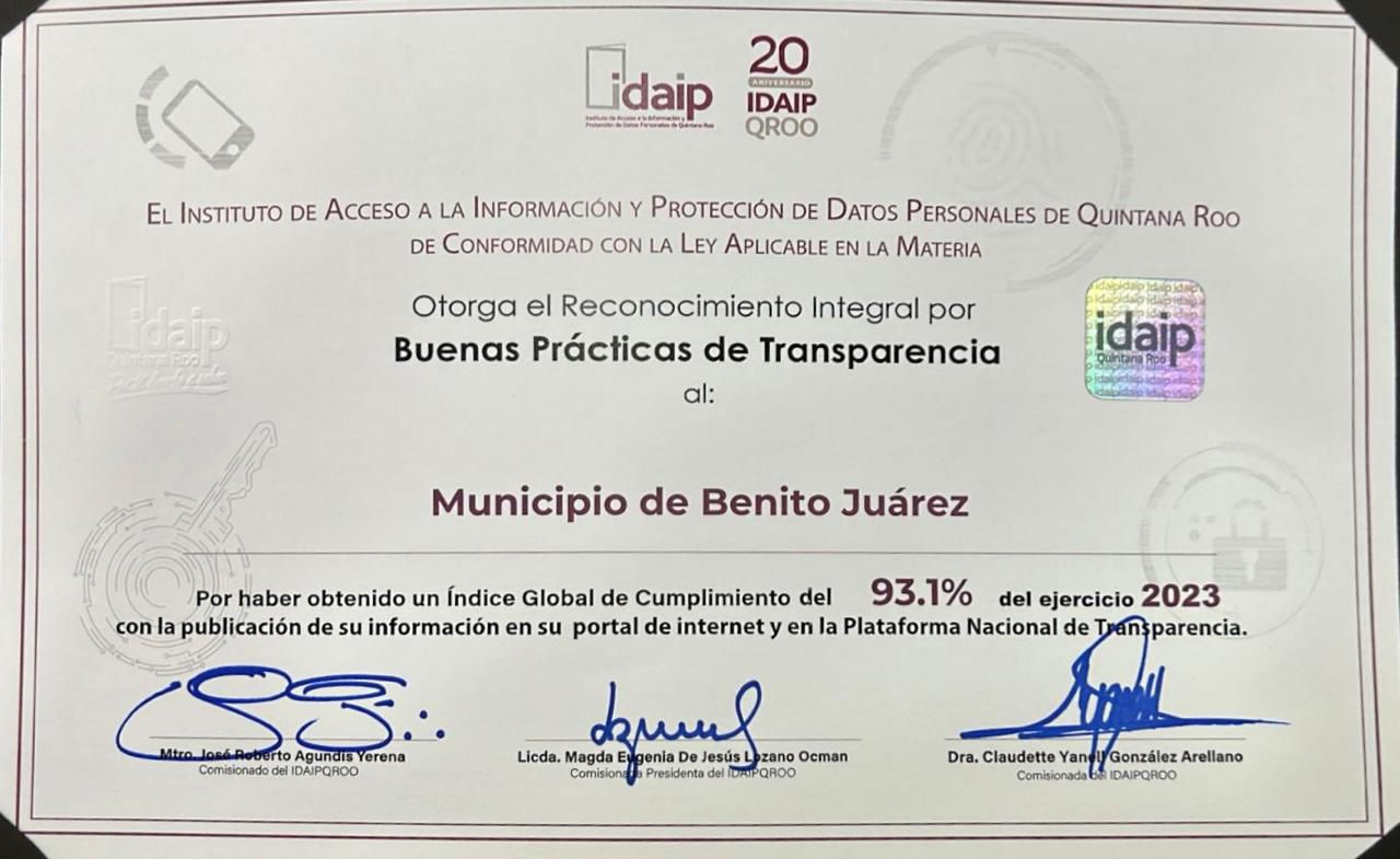 Transparencia”, el municipio de Benito Juárez, recibió por primera vez en su