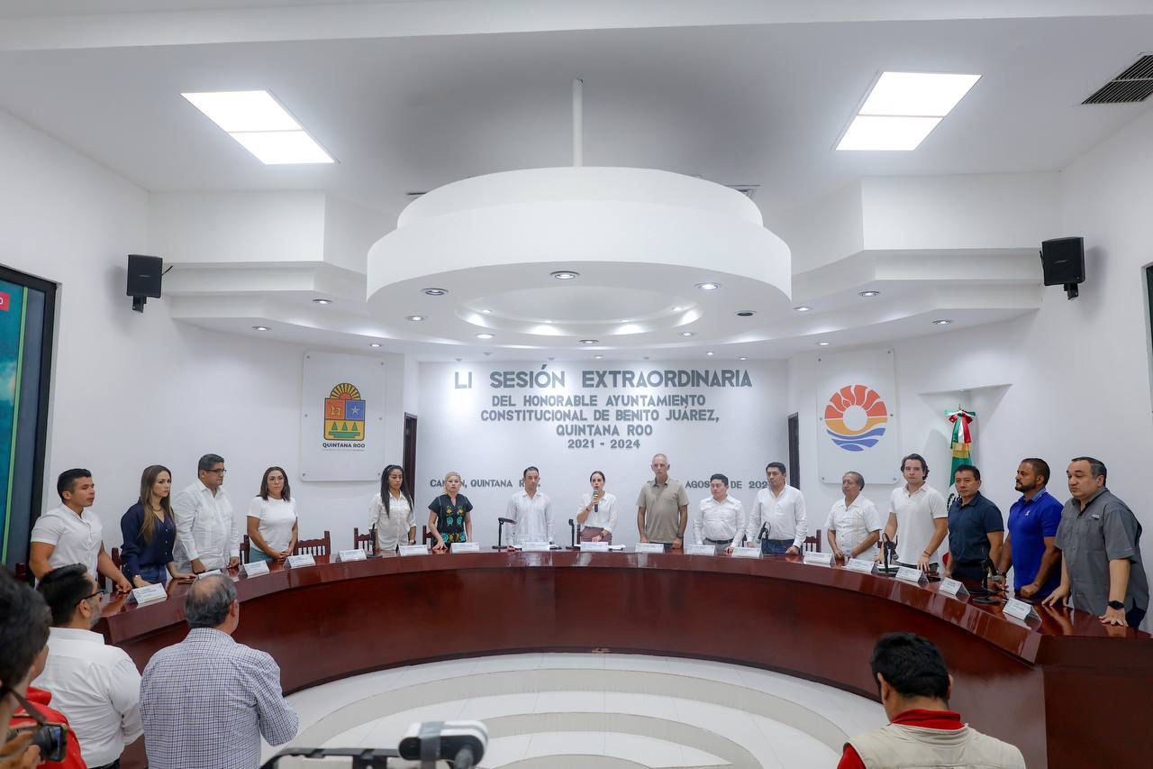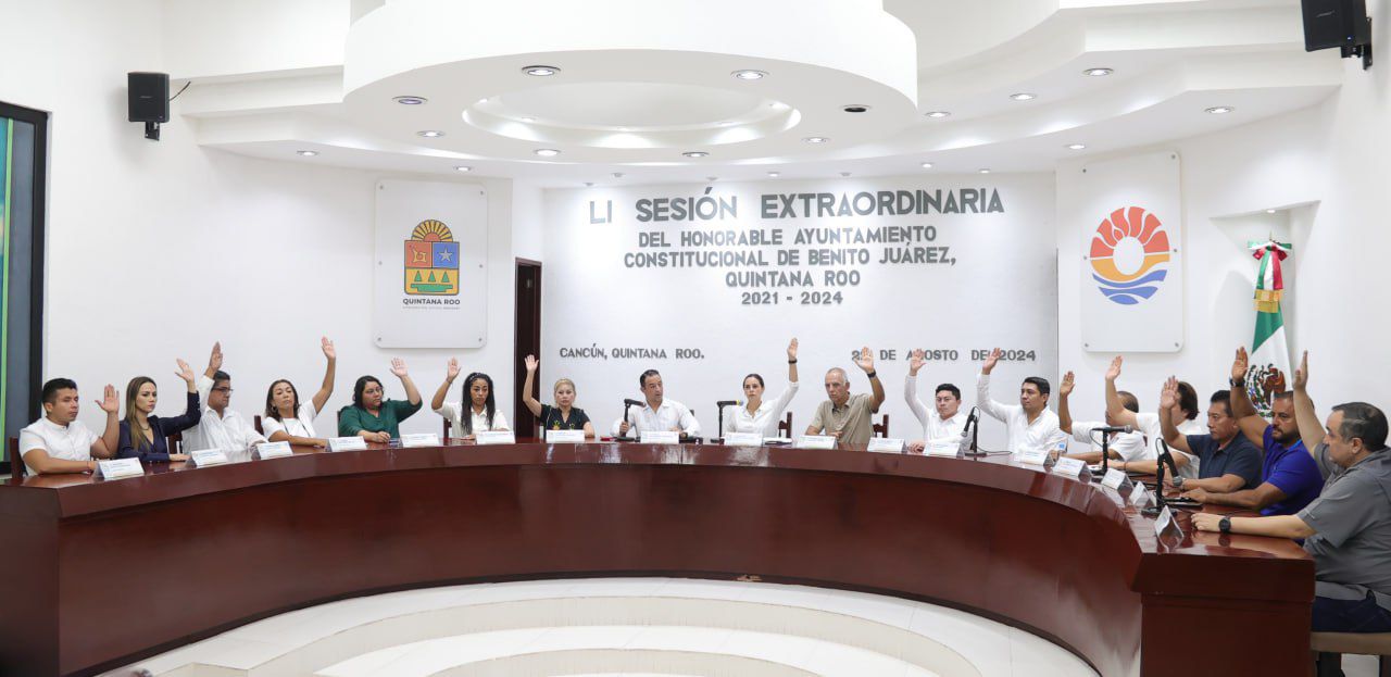 Cancún, Q. R., a 22 de agosto de 2024.- En la Quincuagésima Primera Sesión Extraordinaria, encabezada por la Presidenta Municipal, Ana Paty Peralta, el pleno del cabildo de Benito Juárez determinó un exhorto a las empresas concesionarias del servicio de transporte público urbano de pasajeros en autobuses en ruta establecida, al insistir que no está autorizado un incremento a las tarifas del servicio, cuyo procedimiento para su revisión se encuentra especificado en los correspondientes títulos de concesión.