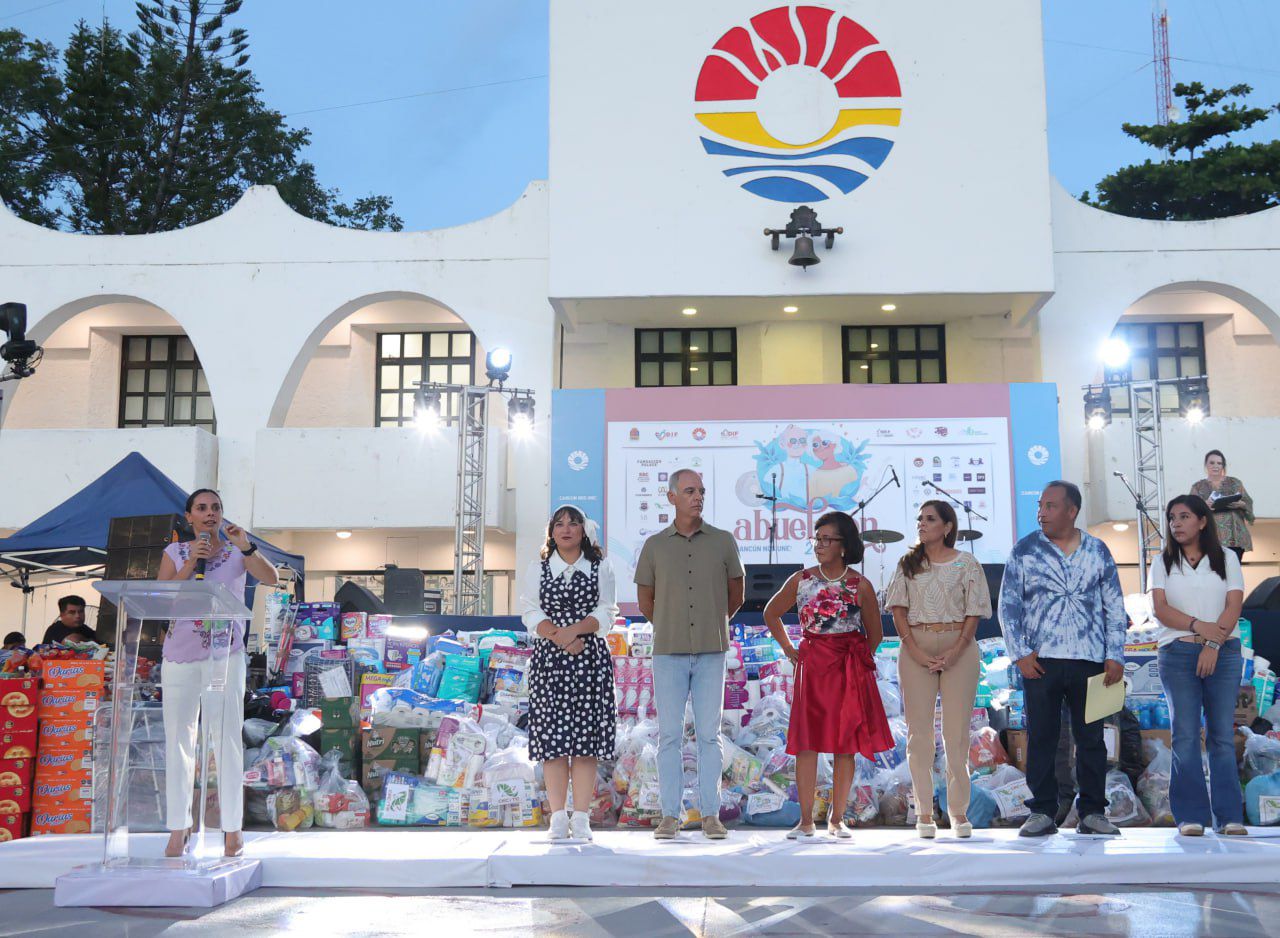 Cancún, Q. R., a 27 de agosto de 2024.- La Presidenta Municipal, Ana Paty Peralta y la presidenta honoraria del Sistema DIF Quintana Roo, Verónica Lezama, se sumaron al cierre de la campaña “Abuelotón 2024”, que con el respaldo de sociedad civil, iniciativa privada y ciudadanos, superó la meta de la emisión anterior al acopiar más de 23 mil artículos para este sector.