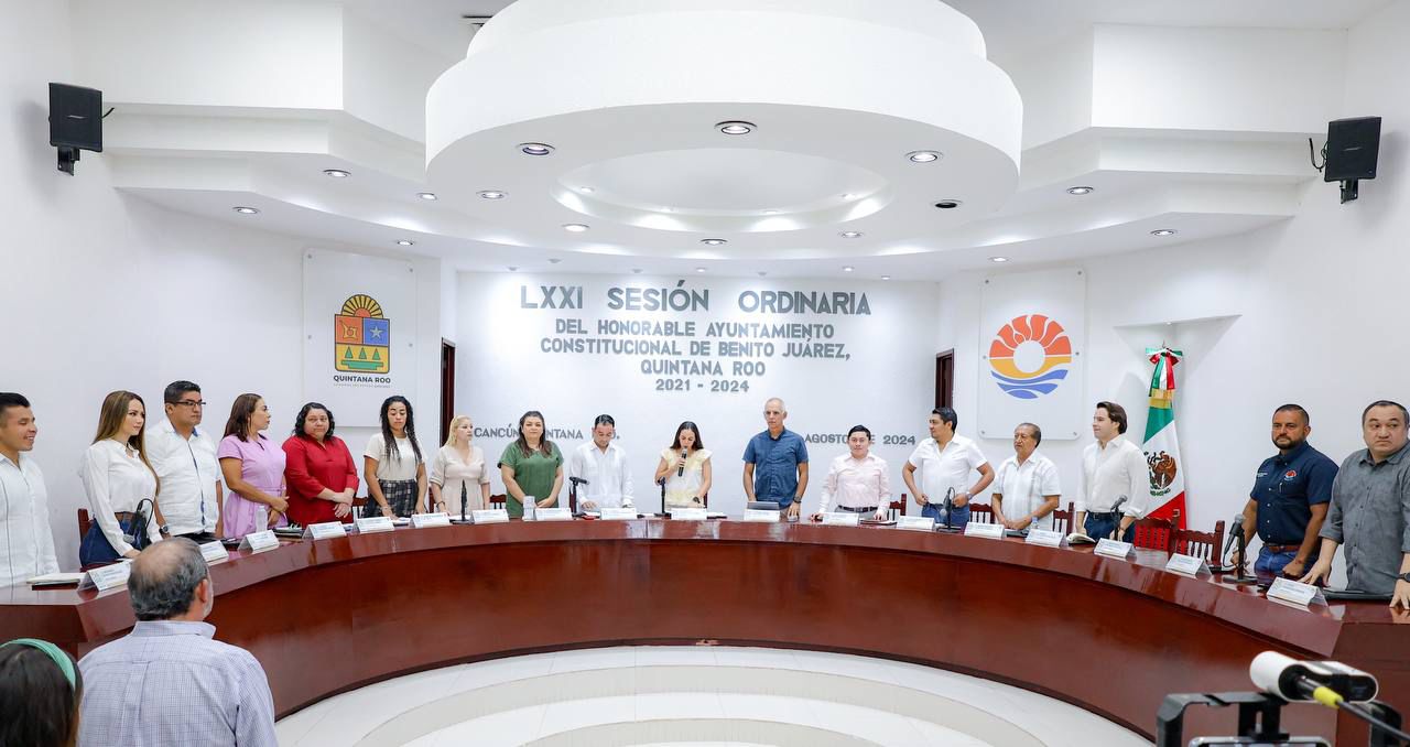 Para finalizar, se designaron por unanimidad, los regidores integrantes de la Comisión Instaladora de la organización de Primera Sesión Solemne del Ayuntamiento de Benito Juárez 2024-2027, contemplada para el 30 de septiembre, así como de la Comisión de Cortesía para la recepción de los representantes de los tres poderes del estado, en el Tercer Informe de la administración 2021-2024, programado para el 17 de septiembre.