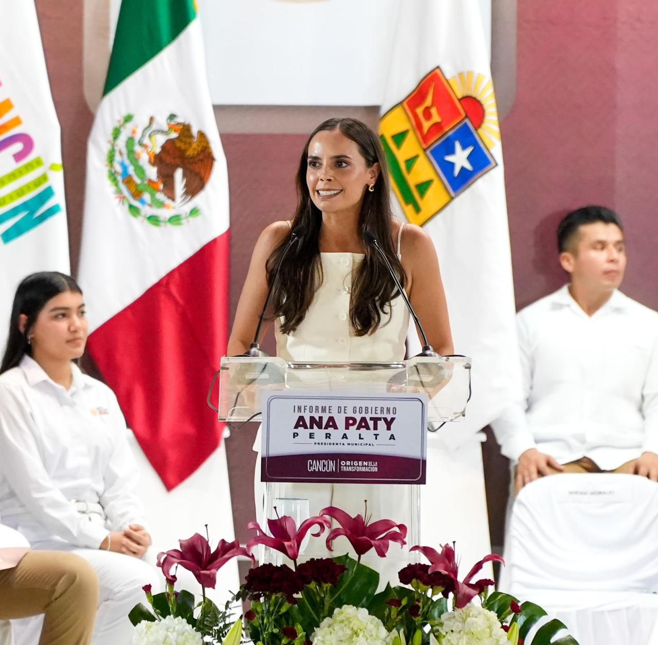 Cancún, Q. R., a 17 de septiembre de 2024.- “Hemos logrado mucho, pero el camino hacia el futuro apenas comienza. Ha llegado el momento para mí de dar los siguientes pasos, de llevar a Cancún al Segundo Piso de la Transformación, de la mano de la gobernadora Mara Lezama y la presidenta Claudia Sheinbaum, pero sobre todo en equipo, siempre, con ustedes los cancunenses”, aseguró la Presidenta Municipal, Ana Paty Peralta, al compartir con los cancunenses los resultados de los últimos tres años de histórica transformación que ha vivido la ciudad.