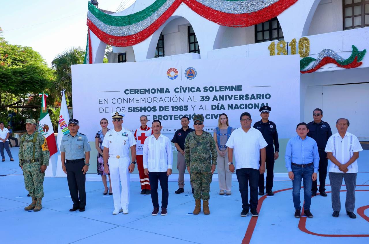 Civil, realizando una ceremonia cívica para recordar los sismos del 19 de