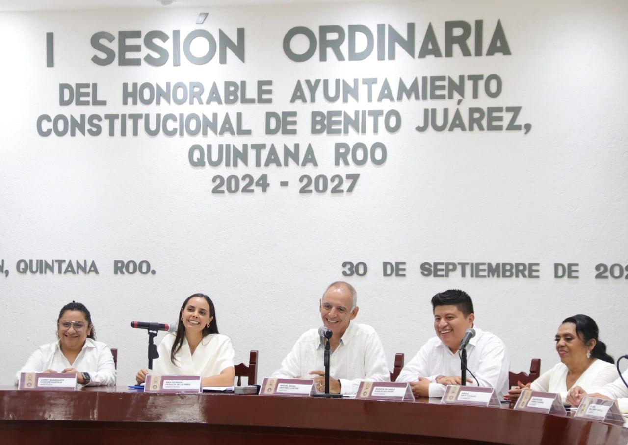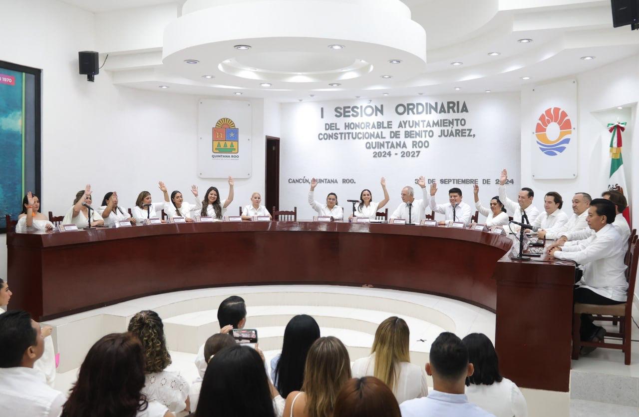Cancún, Q. R., a 01 de octubre de 2024.- En el marco de la Primera Sesión Ordinaria, encabezada por la Presidenta Municipal, Ana Paty Peralta, se aprobaron por unanimidad los primeros nombramientos de la administración 2024-2027 para garantizar la funcionalidad de las acciones municipales y procurar la atención de los ciudadanos.