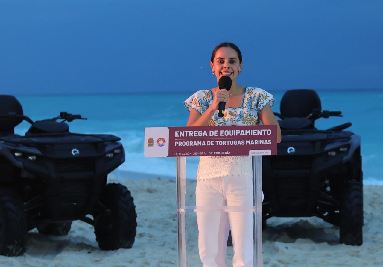 Cancún, Q. R., a 05 de octubre de 2024.- Al ser Benito Juárez la segunda zona con mayor anidación de tortugas marinas en el estado, La Presidenta Municipal, Ana Paty Peralta y la gobernadora Mara Lezama, entregaron vehículos y equipamiento a la Dirección General de Ecología, para fortalecer el trabajo del programa “Protección de Tortugas Marinas”.