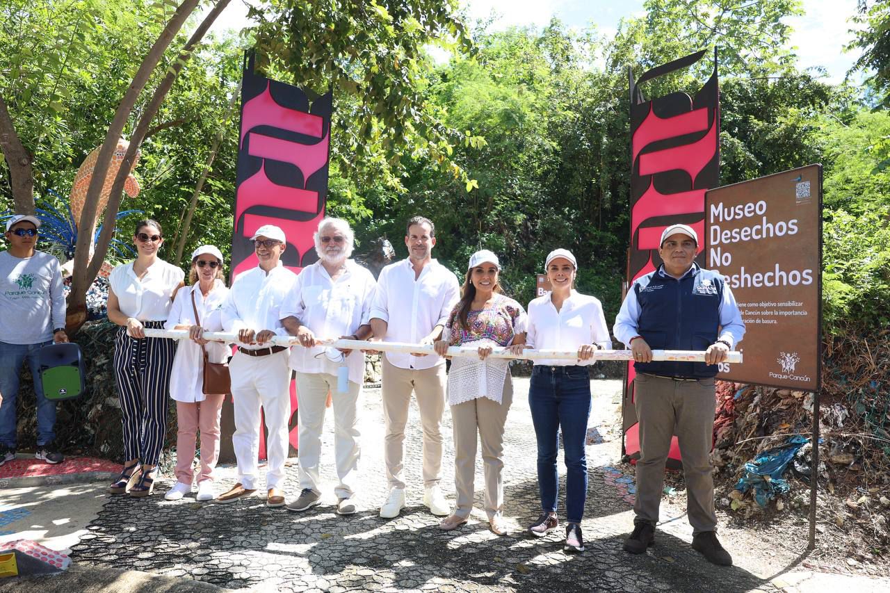 Después se trasladaron para inaugurar el Museo Desechos no Desechos, que precisamente contiene todo tipo de residuos sólidos encontrados en ese lugar que fue el primer basurero de la ciudad y participaron en la develación de la placa alusiva al Top 5 Parques Ecológicos de Cancún.