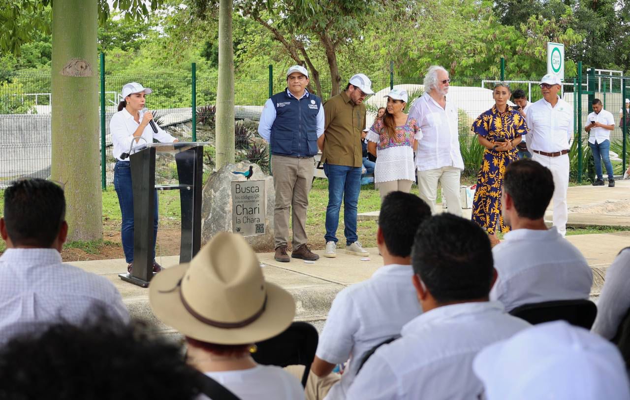 Como parte del evento, de manos del director del Parque Cancún, César Barrios, la Presidenta Municipal recibió un reconocimiento que representa el ave emblemática de ahí, llamada chara, por su apoyo para la introducción de la luz y asignación de ocho colaboradores en esta administración que ayudarán al cuidado de la jardinería.