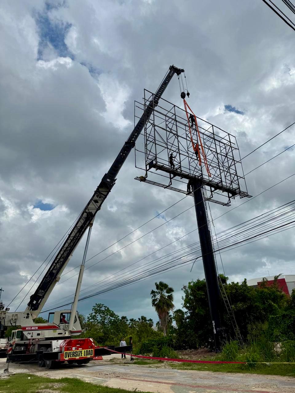 Juárez, realizó el retiro de un espectacular en riesgo de caída por deslave en