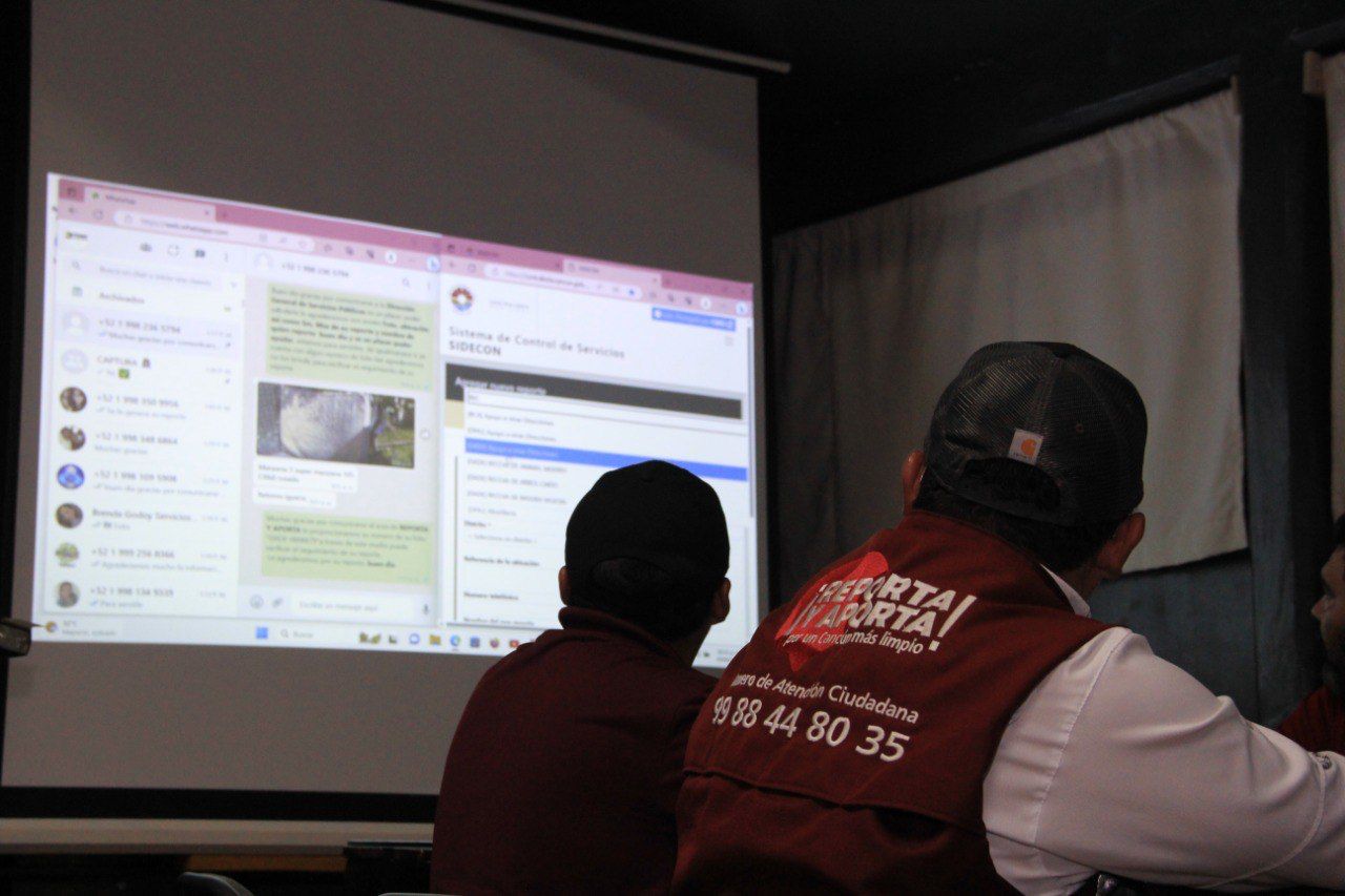Para constatar el funcionamiento de SIDECON, personal de ambas dependencias mostraron cómo se reciben las solicitudes ciudadanas del programa “Reporta y Aporta”, ya sea vía WhatsApp, redes sociales, Jornadas de Atención Ciudadana “¡Cancún nos une!” o por el Sistema Único de Gestiones Institucionales (SUGEI), con dos ejemplos que fueron: petición de bacheo en la Supermanzana 23 y recolección de cacharros en la Supermanzana 105.