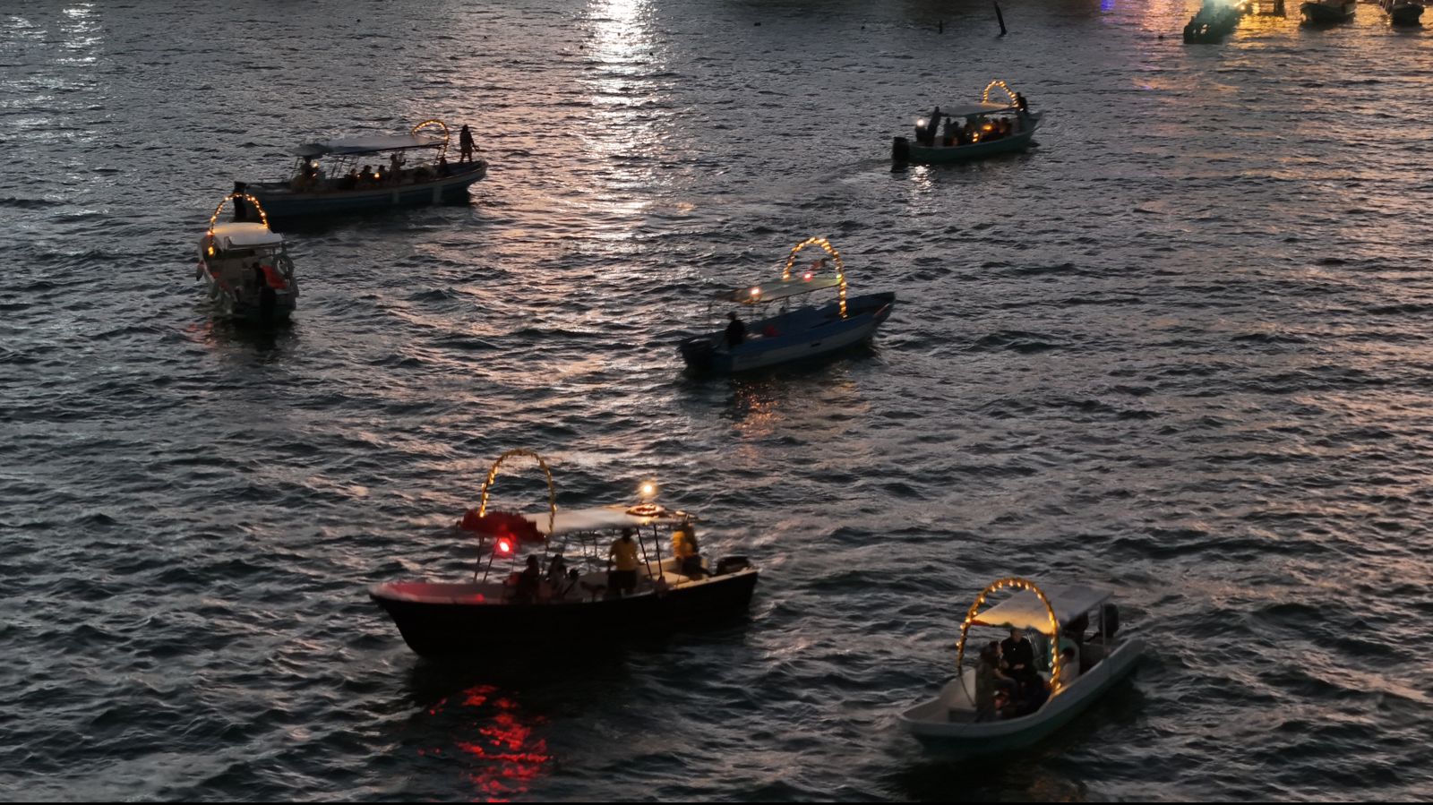catrines que partió al atardecer desde la playa hacia el escenario principal,