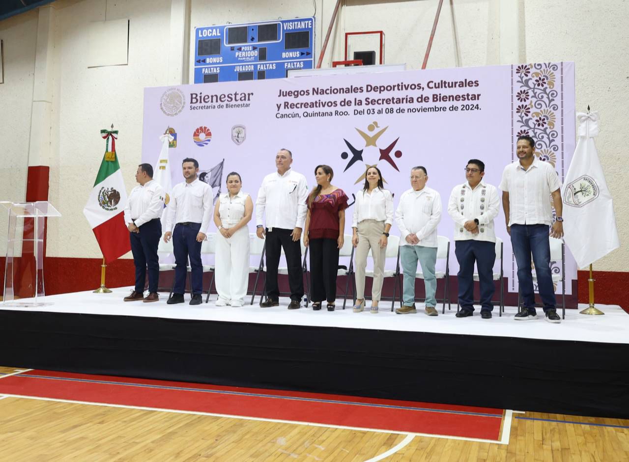 Cancún, Q. R., a 04 de noviembre de 2024.- La Presidenta Municipal, Ana Paty Peralta, participó en la inauguración de los Juegos Nacionales Deportivos, Culturales y Recreativos de los Trabajadores de la Secretaría de Bienestar (SEBIEN), encabezada gobernadora Mara Lezama, para dar inicio a las competencias que se realizarán hasta el 8 de noviembre en Cancún, en las que participarán casi mil colaboradores de las 32 entidades del país.