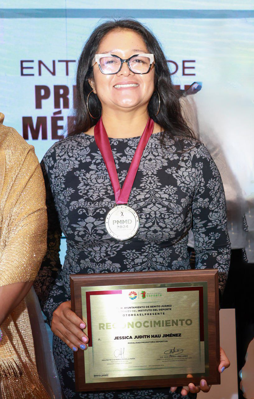 Por la trascendencia e impacto social en la comunidad, se otorgó también la Medalla como Mejor Promotor Deportivo a la Patinadora en línea Jessica Judith Hau Jiménez, por organizar eventos y llevar a sus equipos a competir en: Rodada Familiar Hanal Pixan; Rodada Navideña en la Zona Norte de Cancún en 2023; “Patinaje para todos” en el Día de Reyes; el Festival de las Infancias en Patinaje de Velocidad; la Rodada Mundial Sin Auto; la Copa Nacional de Patinaje de Velocidad; la Copa Algarabán de la Federación Mexicana de Patinaje, la Copla Playa del Carmen y el Selectivo Isla Mujeres, entre otros encuentros.
