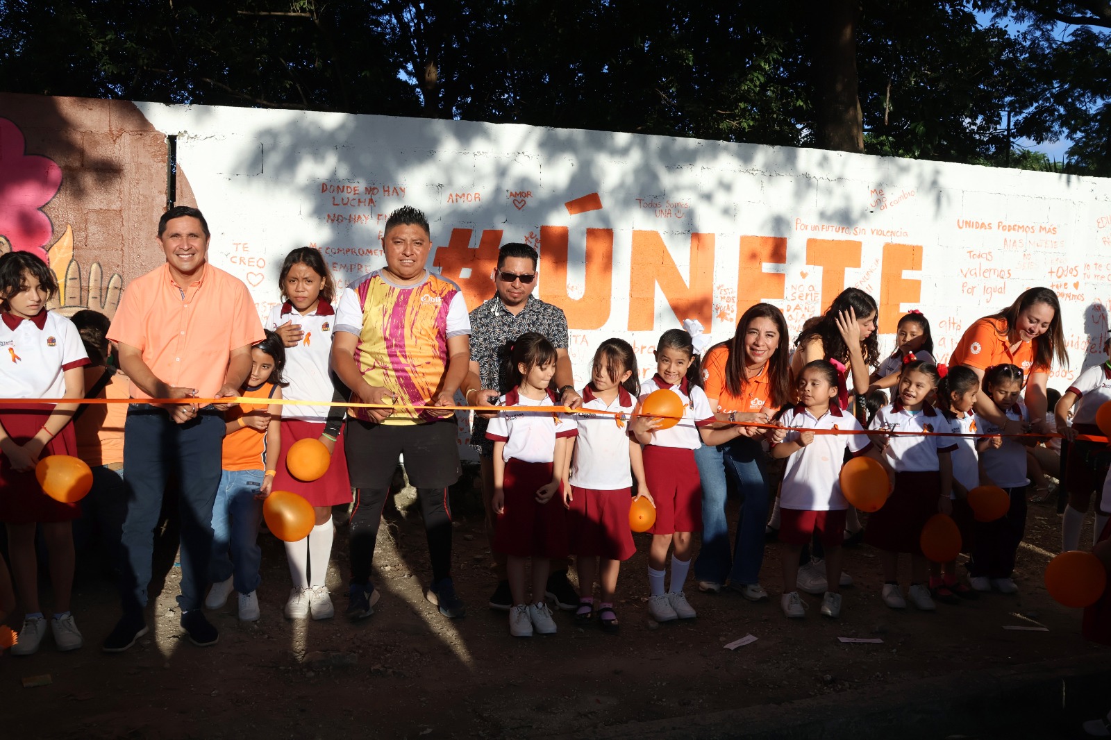 El mural, pintado en la barda colindante con la Escuela Primaria Belisario Domínguez T.V., se erige como un testimonio visual del compromiso de la Presidenta Municipal, Ana Paty Peralta, de las instituciones y de la comunidad para erradicar la violencia y promover el respeto y la dignidad de todas las personas, independientemente de su género.