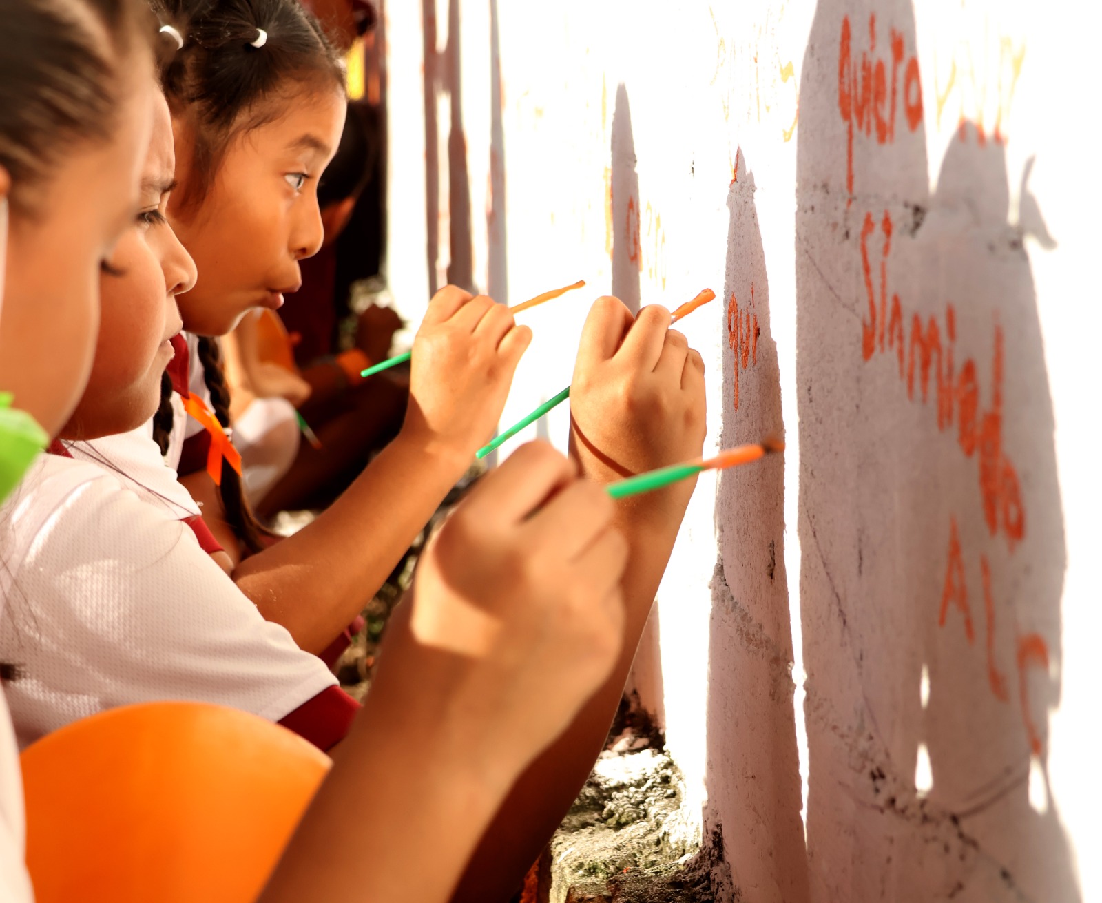 "la acción del día de hoy simboliza el compromiso que todos compartimos en la lucha contra la violencia, especialmente la violencia hacia las niñas y mujeres, quienes históricamente han sido las más vulnerables. Este mural no es solo una obra artística, sino una declaración pública de que no podemos ni debemos permitir que la violencia continúe afectando a nuestras niñas y mujeres”.
