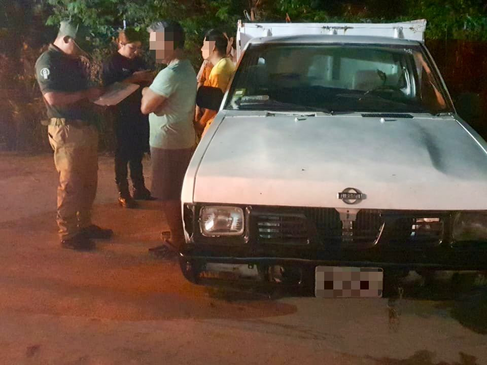 sexo masculino a bordo de una camioneta tipo Nissan color blanco, que se