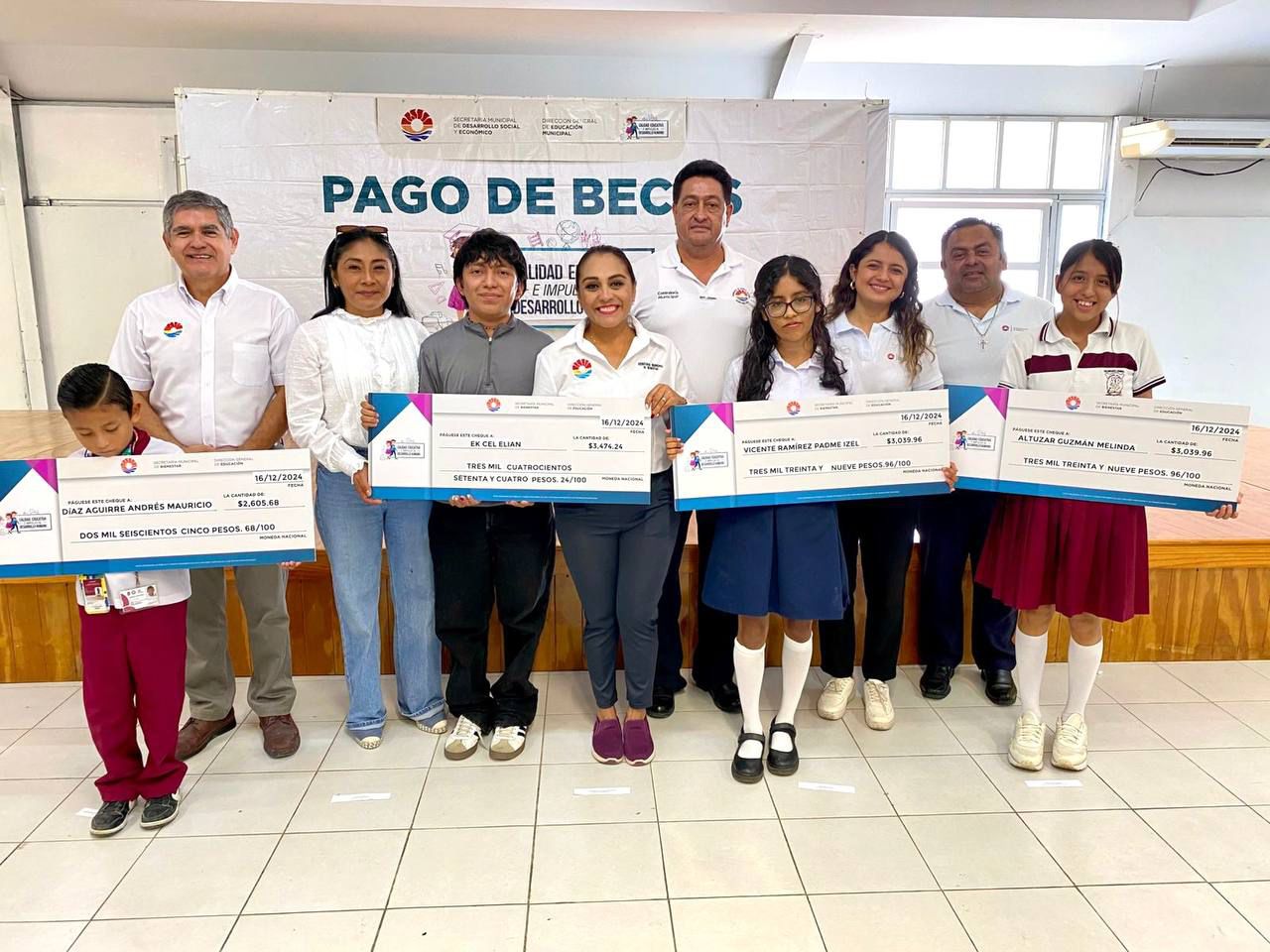 Cancún, Q. R., a 16 de diciembre de 2024.- Autoridades del Ayuntamiento de Benito Juárez, a través de la Secretaría Municipal de Bienestar y la Dirección General de Educación, realizaron el primer pago de mil 528 becas de los alumnos de nivel Especial, Preescolar, Secundaria, Media Superior y Superior de escuelas públicas del municipio, correspondiente al ciclo escolar 2024-2025.