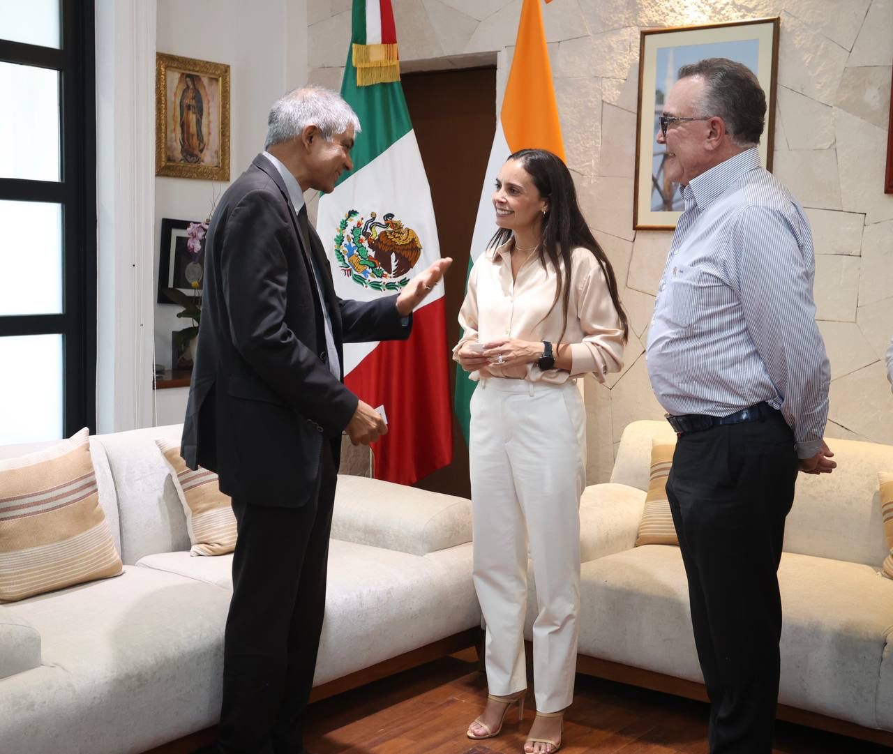 Cancún, Q. R., a 23 de junio de 2023.- A fin de continuar reforzando lazos con ciudades internacionales, la Presidenta Municipal, Ana Paty Peralta, recibió en el Palacio Municipal al Embajador de la India en México, Pankaj Sharma, con quien compartió experiencias y la total disposición de colaborar para el desarrollo de Cancún y el país asiático.