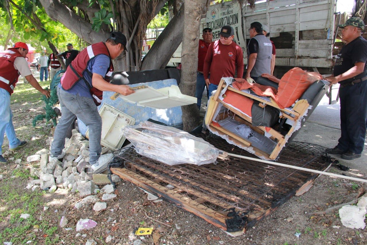 En ese sentido, se informa que la siguiente semana, del lunes 26 al viernes 30 de junio, se estarán realizando estas acciones en el fraccionamiento Las Palmas, ubicado en la Supermanzana 43, donde las y los vecinos además de los ciudadanos de las colonias colindantes podrán desechar de forma adecuada sus cacharros, tales como, recipientes, enseres electrodomésticos, muebles y demás.