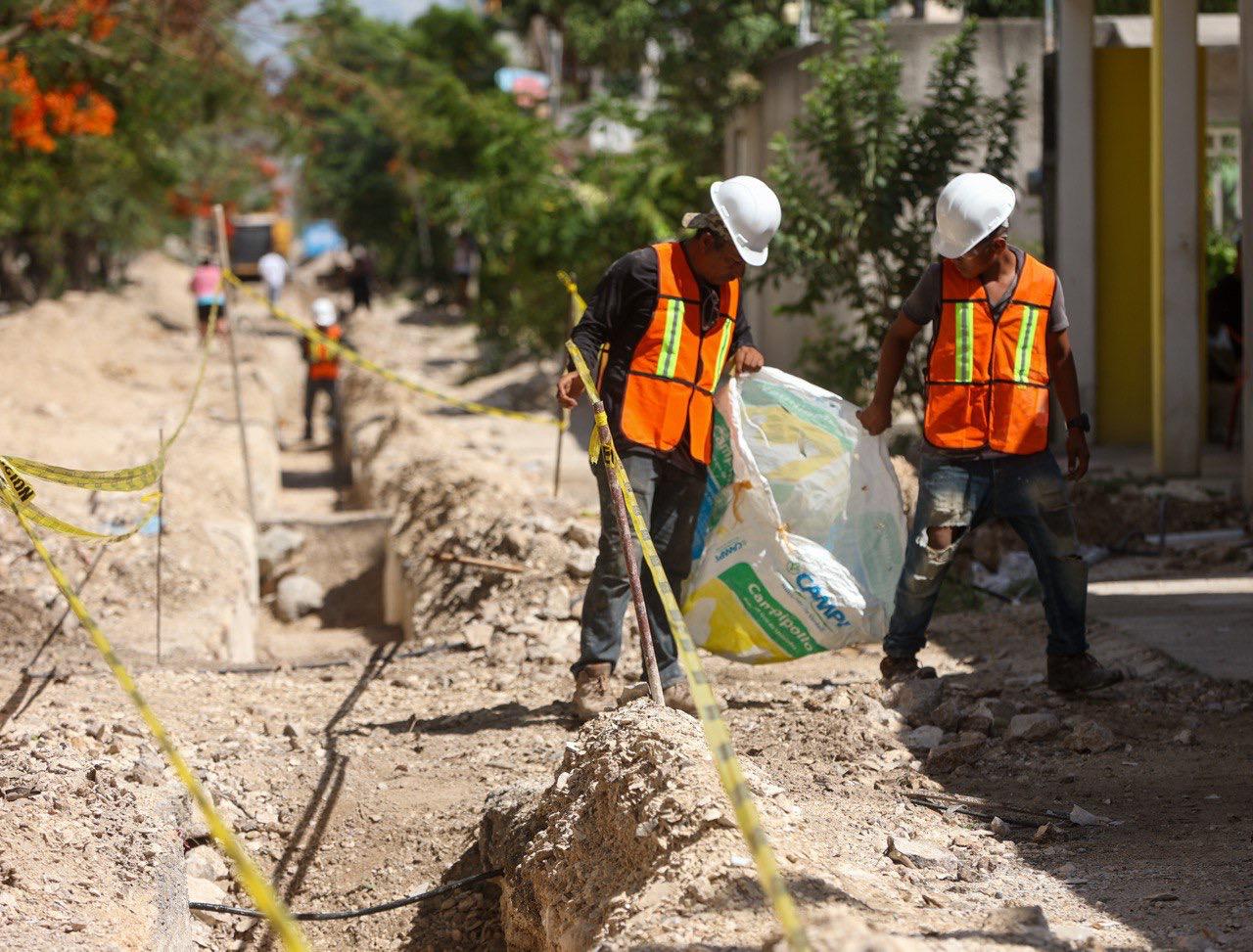 de pozos de absorción, red de alumbrado público, drenaje sanitario, señalética,