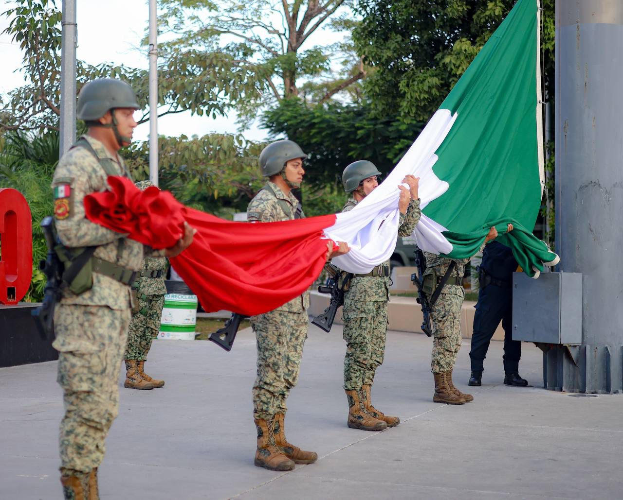 El izamiento a la Bandera Nacional estuvo a cargo del 64 Batallón de Infantería del Ejército Mexicano, mientras que el juramento al Lábaro Patrio fue dirigido por el alumno, Leonel Jesús Novelo Jiménez, de la Escuela Secundaria Técnica número 11 “Moisés Saénz Garza”.