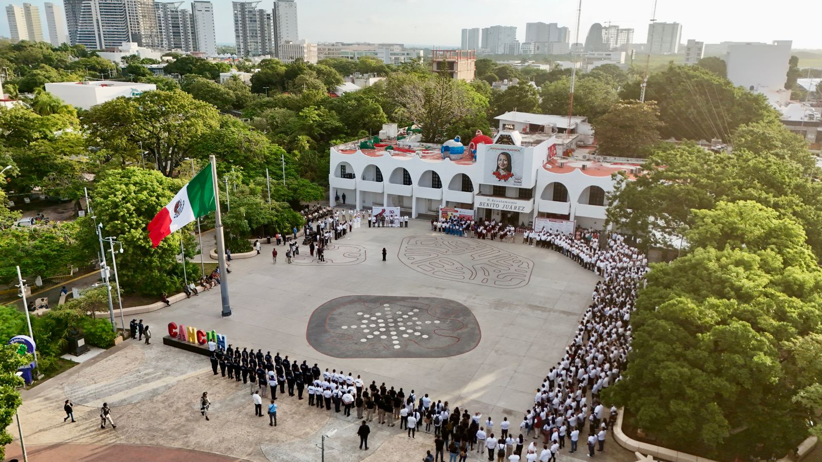 Además, el Himno a Quintana Roo y Nacional Mexicano fue interpretado por la Banda de Música del Ayuntamiento, acompañada por las escuelas Secundaria Técnica número 11 “Moisés Saénz Garza” y la Secundaria General número 6 “Belisario Domínguez”, así como funcionarios de las diferentes dependencias del Gobierno Municipal, que presenciaron este significativo acto cívico.