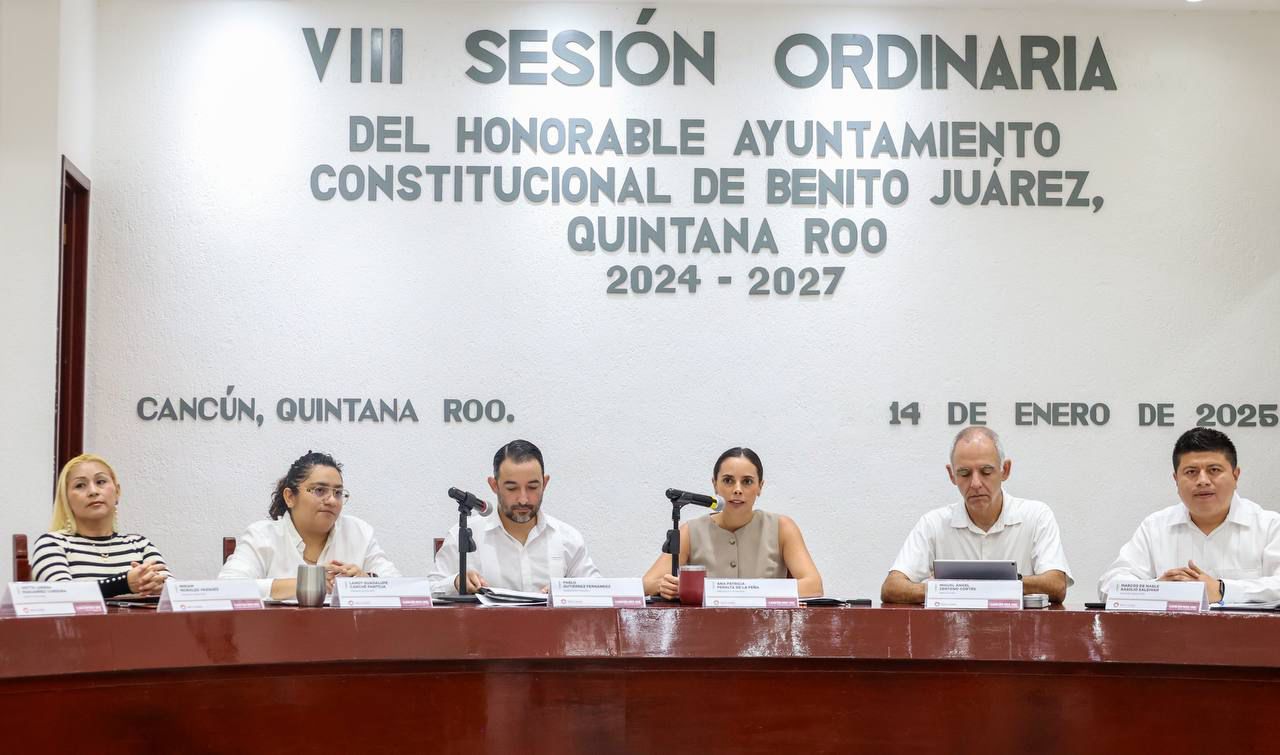 Cancún, Q. R., a 14 de enero de 2025.- A fin de mejorar la certeza jurídica de los habitantes de Cancún, durante la Octava Sesión Ordinaria encabezada por la presidenta municipal, Ana Paty Peralta, el Cabildo de Benito Juárez avaló por unanimidad el nombramiento y tomó la protesta de ley a Nora Elizabeth Garza Ramírez, como directora del nuevo Instituto de Regularización para el Bienestar Patrimonial de Benito Juárez.