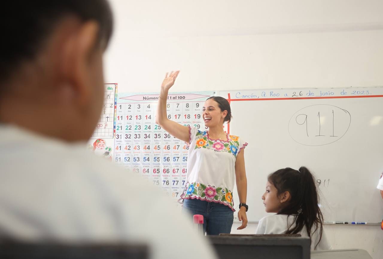 Cancún, Q. R., a 26 de junio de 2023.- Como todos los lunes, desde muy temprana hora, la Presidenta Municipal, Ana Paty Peralta, encabezó la ceremonia de honores a la Bandera y constató el programa “Educar es de todos” en la primaria María del Socorro Puerto Zumárraga, donde señaló que es muy importante realizar estas acciones en las diferentes escuelas de la ciudad, con el fin de reforzar los valores cívicos, para cantar los himnos Nacional Mexicano y a Quintana Roo, con mucho amor y muchas ganas de sentirse orgullosos de las raíces.