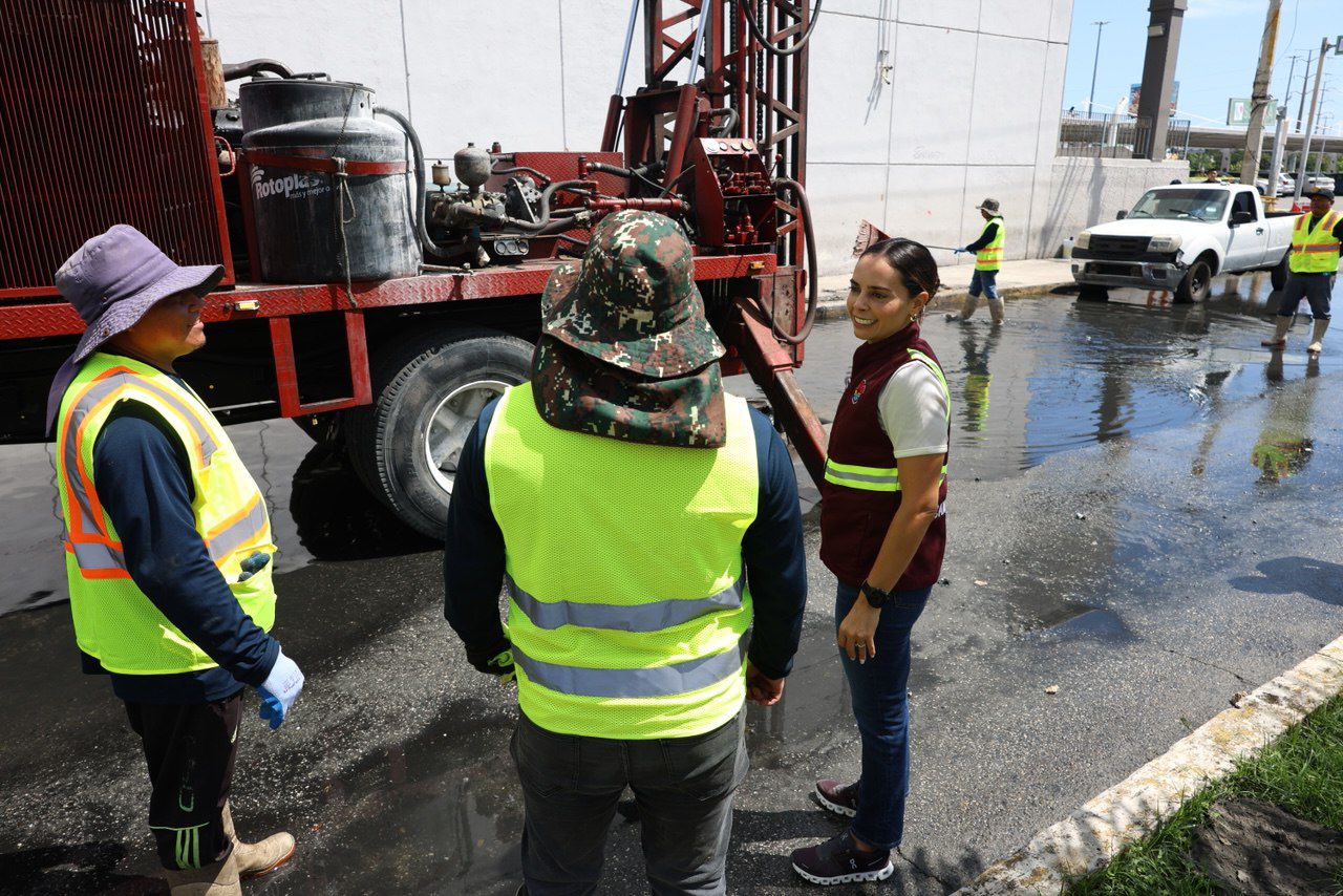 “Tenemos a las brigadas en la ciudad haciendo trabajos de limpieza y mantenimiento para evitar encharcamientos. Lo que le pedimos también a las vecinas y vecinos es no tirar cualquier tipo de residuos y basura que terminan obstruyendo nuestros pozos”, exhortó la Alcaldesa.
