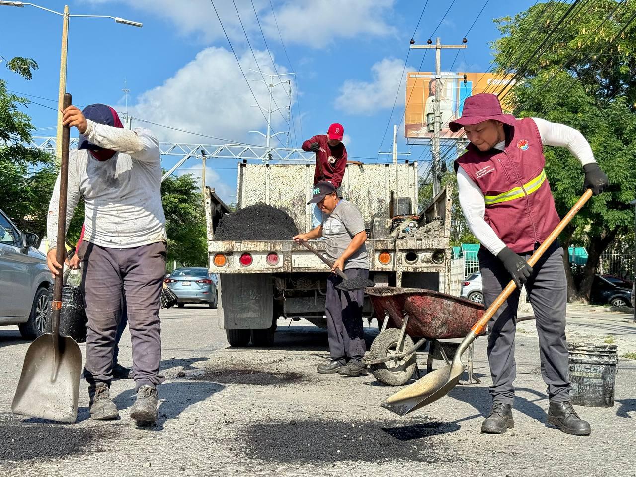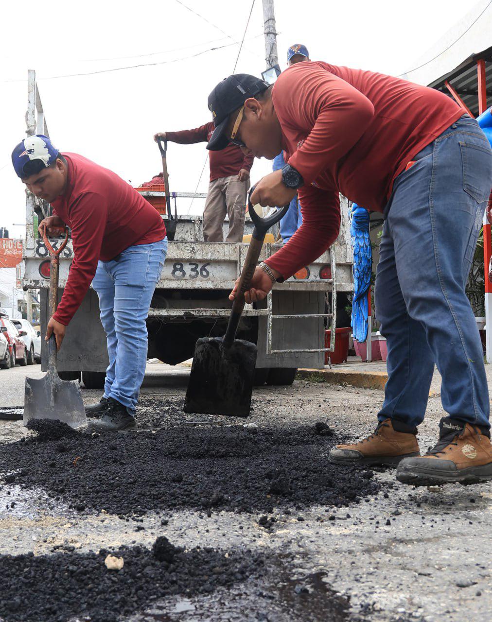 La Primera Autoridad Municipal detalló que a pesar de las lluvias a causa de los frentes fríos, se han aprovechado los días soleados poniendo como prioridad el bacheo de avenidas principales, así como de calles internas en diversas Supermanzanas.