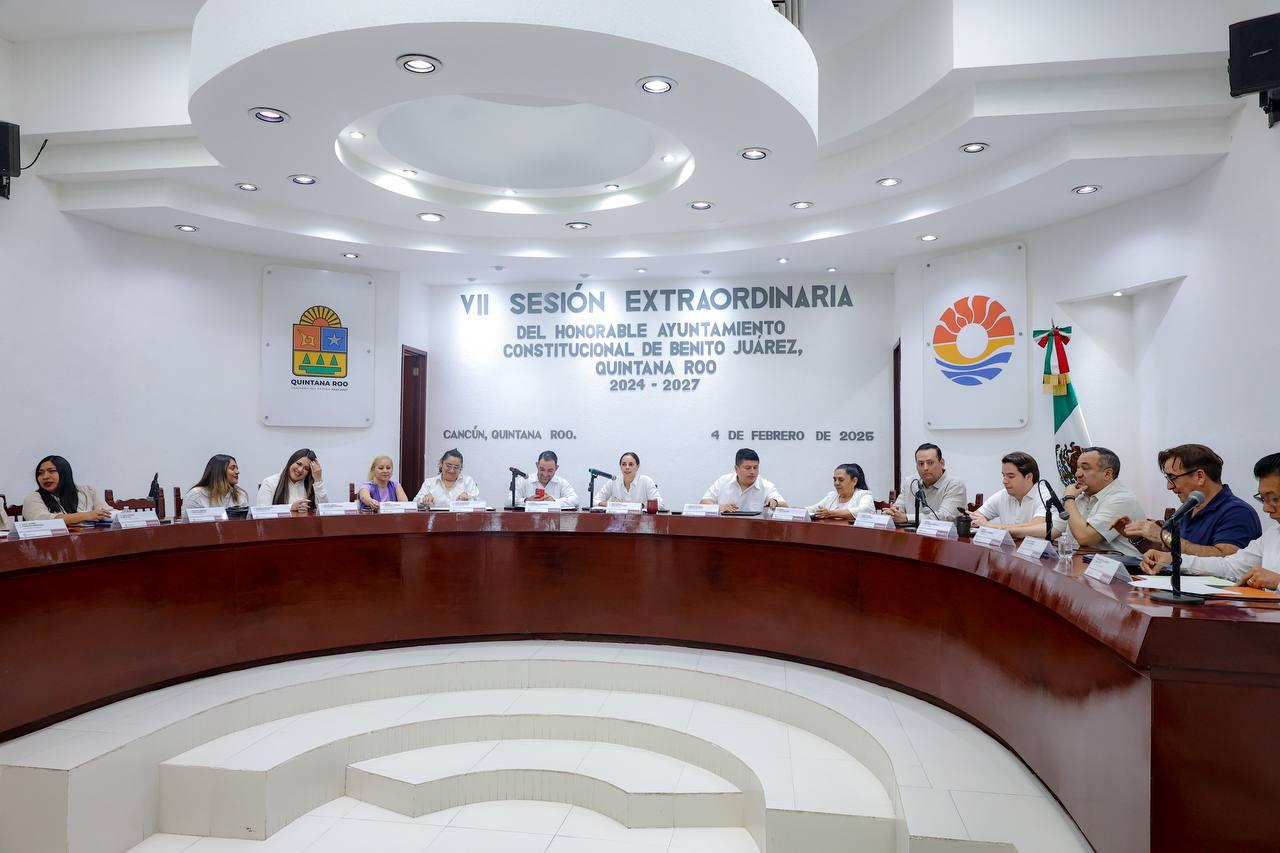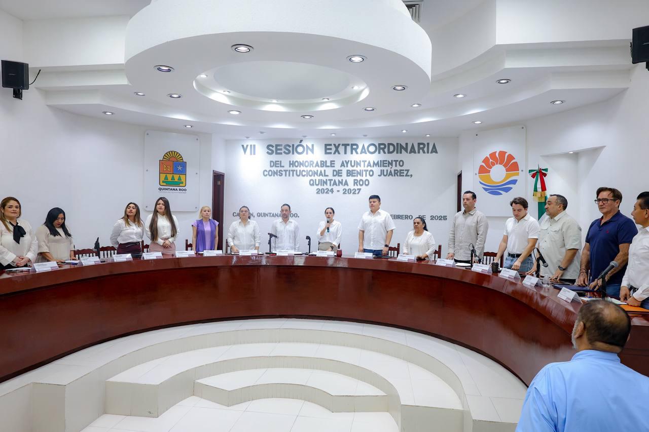 Cancún, Q. R., a 04 de febrero de 2025.- Durante la Séptima Sesión Extraordinaria, encabezada por la Presidenta Municipal, Ana Paty Peralta, el Cabildo de Benito Juárez aprobó diferentes acuerdos para reformar artículos de la Constitución Política del Estado Libre y Soberano de Quintana Roo, que se relacionan al cuidado del bienestar de las y los ciudadanos.