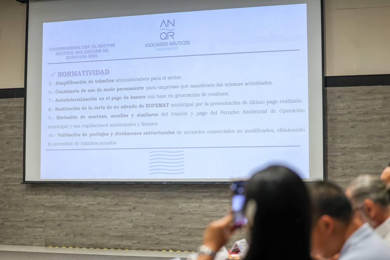 A esta importante reunión se sumaron servidores municipales de diferentes dependencias, así como el director de la Asociación de Náuticos Quintana Roo, Ricardo Muleiro López; en representación de la Capitanía de Puerto Regional de Puerto Juárez, Teniente Rodrigo Zalce Benítez y el asesor legal de la Asociación de Náuticos Quintana Roo, Graciela Flamenco.
