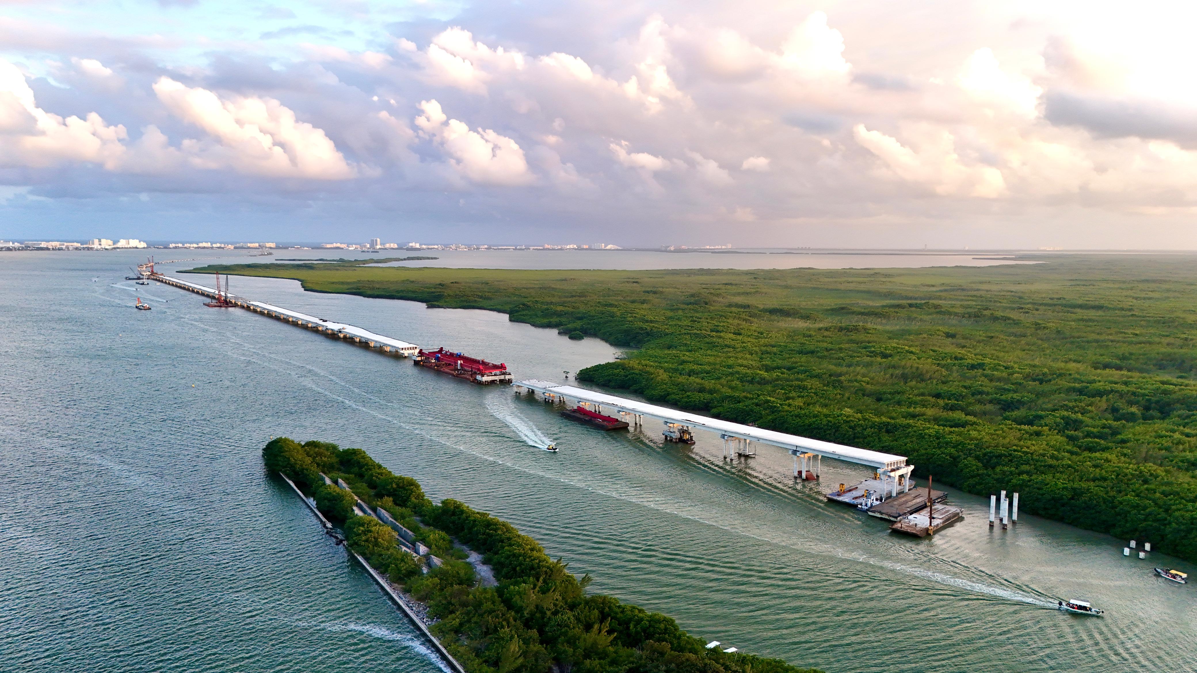 El proyecto contó con el reto de no dañar el manglar, por lo que se usó un equipo sofisticado de ingeniería italiana llamado “TopDown”, por primera vez en México y segunda en Latinoamérica para edificar desde arriba las pilas de cimentación, las columnas, así como el montaje de cabezales y trabes.