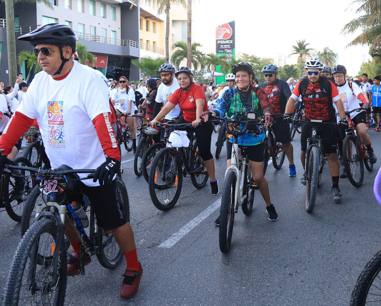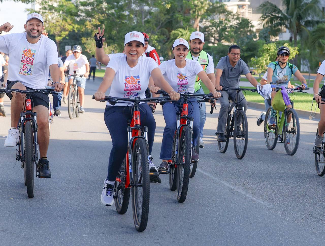 “Estamos en la primera edición del Paseo Cancunense, una vía para que puedan disfrutar en familia, para que los domingos podamos salir a caminar, a rodar en bici, a correr, pero sobre todo a hacer comunidad”, afirmó durante su intervención en este evento deportivo.