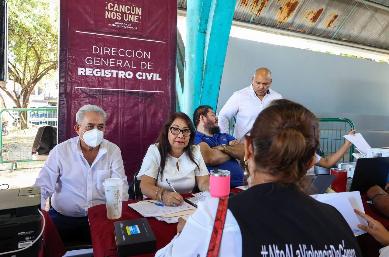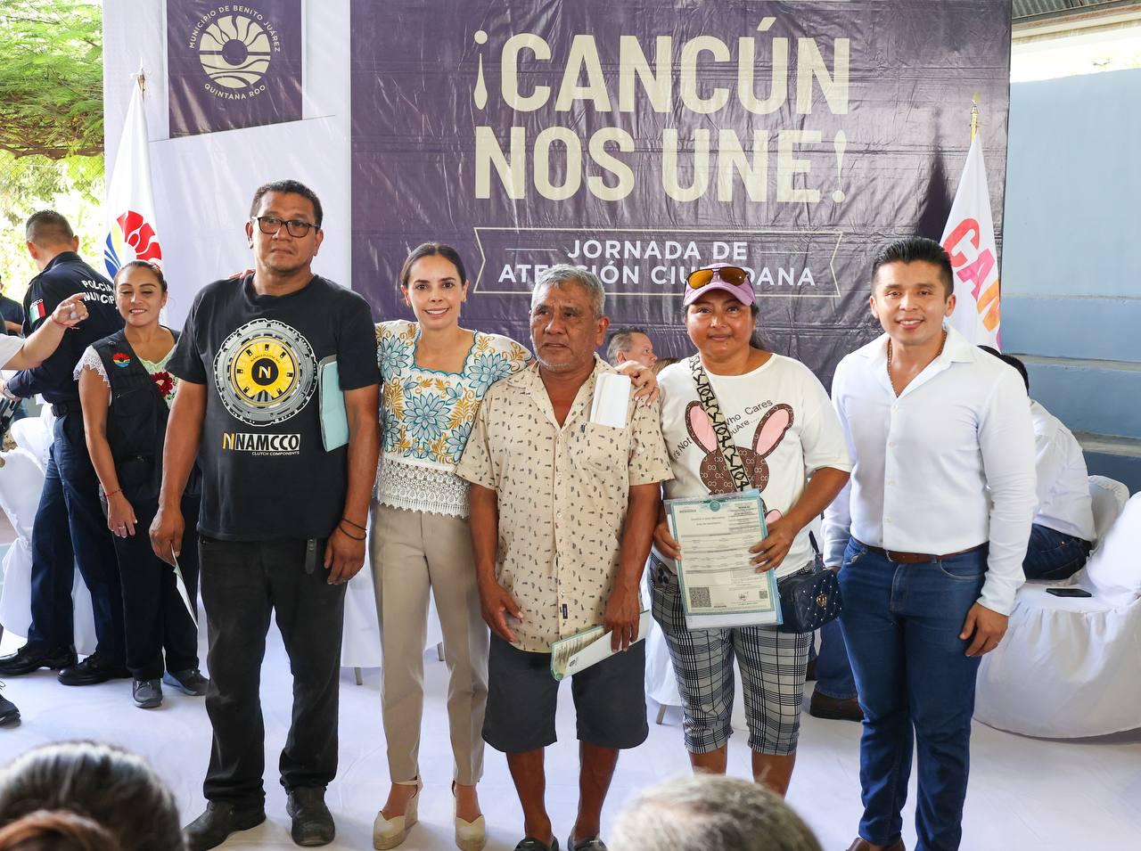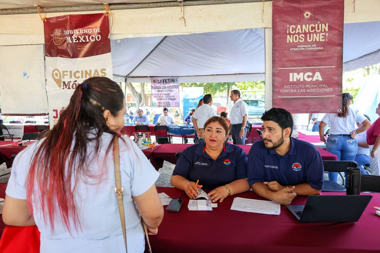 La Presidenta Municipal saludó a los ciudadanos que se encontraban en los diferentes módulos para acceder a los más de 100 trámites y servicios de dependencias municipales, estatales, federales y otras instancias para resolver peticiones y gestiones de esa zona y otras supermanzanas de Cancún, por lo que también entregó tres actas de nacimiento y 13 constancias antecedentes no registrales a los respectivos beneficiarios, así como escuchó a los habitantes en audiencias públicas sobre varios temas.
