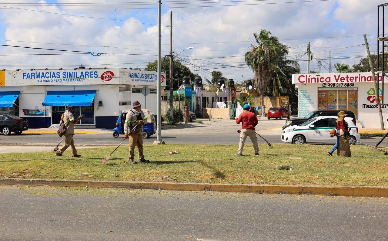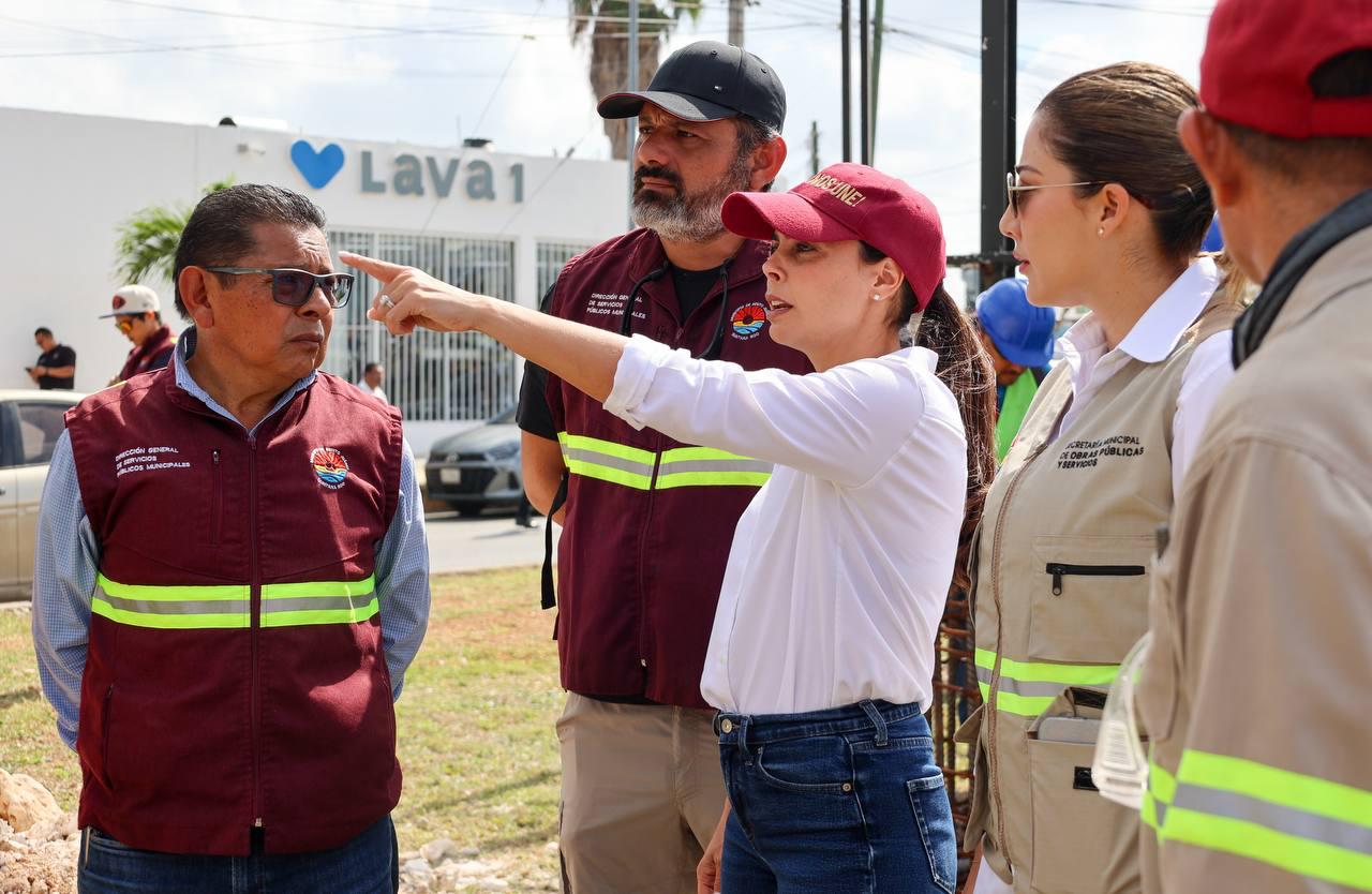 Luego de concluir su supervisión en Protección Civil, Ana Paty Peralta se trasladó al camellón frente a ese edificio municipal, donde constató que los espacios públicos estén en óptimas condiciones, verificando labores de limpieza general por parte de brigadas de la Dirección General de Servicios Públicos, en el fraccionamiento Paseo Las Palmas, de la Av. 20 de Noviembre a Av. Chetumal y la Av. Yaxché.