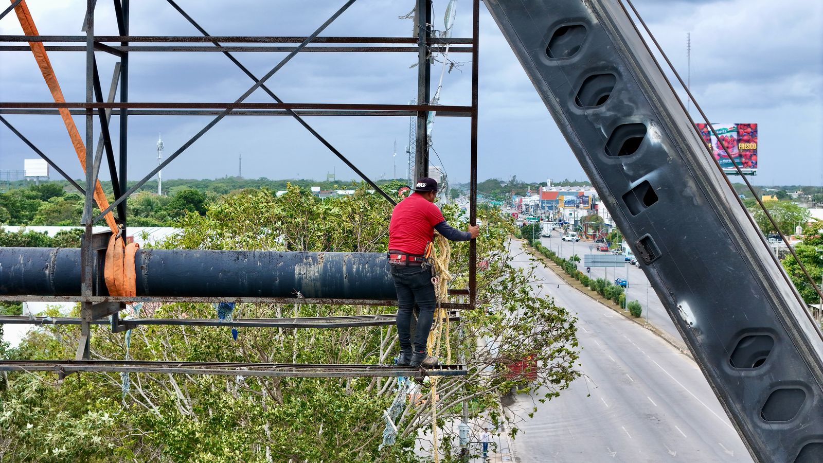 Cancún, Q. R., a 21 de febrero de 2025.- Como parte del programa de limpieza de imagen urbana, a través de la Secretaría de Ecología y Desarrollo Urbano, y la dirección de Imagen Urbana y Vía Pública, se llevó a cabo el retiro de un espectacular tipo unipolar ubicado en la Supermanzana 98, sobre la Avenida José López Portillo.